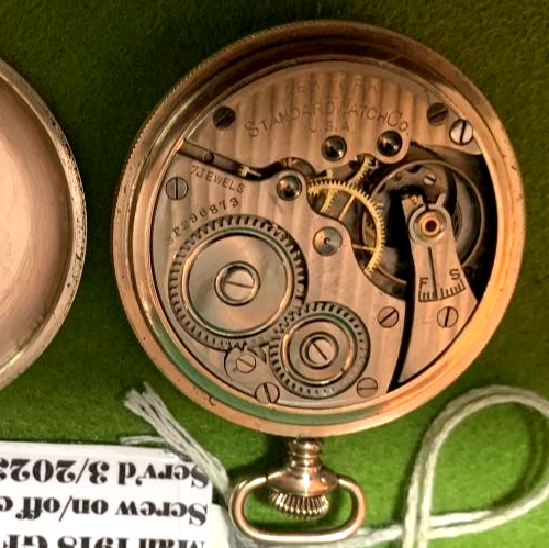 Very nice 1918 NY Standard 7 jewel pocket watch, it was cleaned and serviced in March 2023, runs and keeps good time. Nicely engraved case (no personalization in center cartouche shield of watch back). Please note: We only ship in the US. As with all the watches we are offering at present time, they, like this piece, runs, sets, winds , however they are not timed for precision which is best left to a professional watchmaker*. We test and inspect all watches just before we ship them to respective buyers to assure accurate descriptions/function Please note: All vintage/antique time pieces we sell are sold "as is, as found" NO RETURNS. We will indicate whether a watch is running or not if serviced or repaired-HOWEVER we cannot guarantee accuracy or longevity, extend of run time, etc. *Antique watches do not have the accuracy of modern watches We will note in description any obvious damage or defects. So, by default of description, please continue to consider ANY watch we offer as needing cleaning/service/ repair/adjustment etc. and hence are listed for “parts /repair and/or restoration/repair” and should only be serviced by a professional watchmaker Even if the watch is running or keeping time within its limits and expectations. Our experience, (overall excellent with most buyers being honest and having integrity) over the past 25 years of eBay sales, has inducted a few amateur /weekend “watchmakers” who have tested their “skills” on a watch purchased from us, damaged it, or harvested/exchanged part(s) then demanded to return it for a refund. If you find any issue with a purchase from us, please contact us via eBay messages and we will make our best effort to pragmatically resolve a legitimate problem(s) Note we are not jewelers, or professional auctioneers, these watches are from a former watchmaker and were catalogue for eBay auction; referenced with inventory labels and information via the serial numbers using “Pocket Watch Data base” (on-line) We reserve the right to cancel any bid at our discretion, anyone with no feedback, or less than ten purchases will have bids retracted. Sorry. PLEASE DO NOT ASK US TO END AN ITEM(S) EARLY SO YOU CAN PURCHASE, OR ASK TO MAKE A “DEAL” IF YOU WANT TO BUY MULTIPLE ITEMS… OR SEND US AN OFFER WHEN THERE IS NO OPTION FOR OFFERS ON AN ITEM. Photos are an integral part of the description, ask question if you have any BEFORE you bid/buy. We described the timepieces we offer based on observations and information from the watchmaker/collector. Watches we offer are antique mechanical timepieces, and again, longevity and accuracy are not guaranteed. We package and ship with the utmost care. Again, no returns on antique/vintage timepieces. Thank you.
