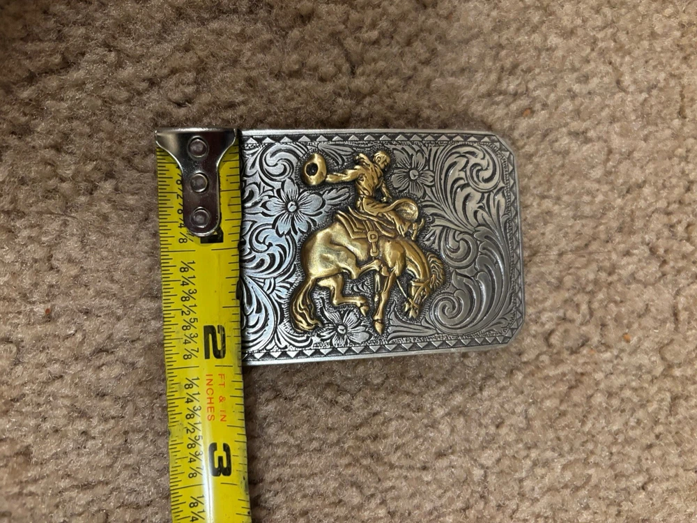 This vintage Nocona belt buckle is a must-have for any collector of vintage accessories. With its intricate design and high-quality craftsmanship, it is sure to catch the eye of any admirer. The buckle is made by Nocona, a well-known brand in the belt buckle industry, and is in excellent shape, ready to be added to your collection today. Size in shown in pictures. The buckle features a unique design that is sure to impress, making it the perfect addition to any outfit. It is made from high-quality materials and is built to last, ensuring that it will be a treasured item for many years to come. Don't miss your chance to own this one-of-a-kind vintage Nocona belt buckle.
