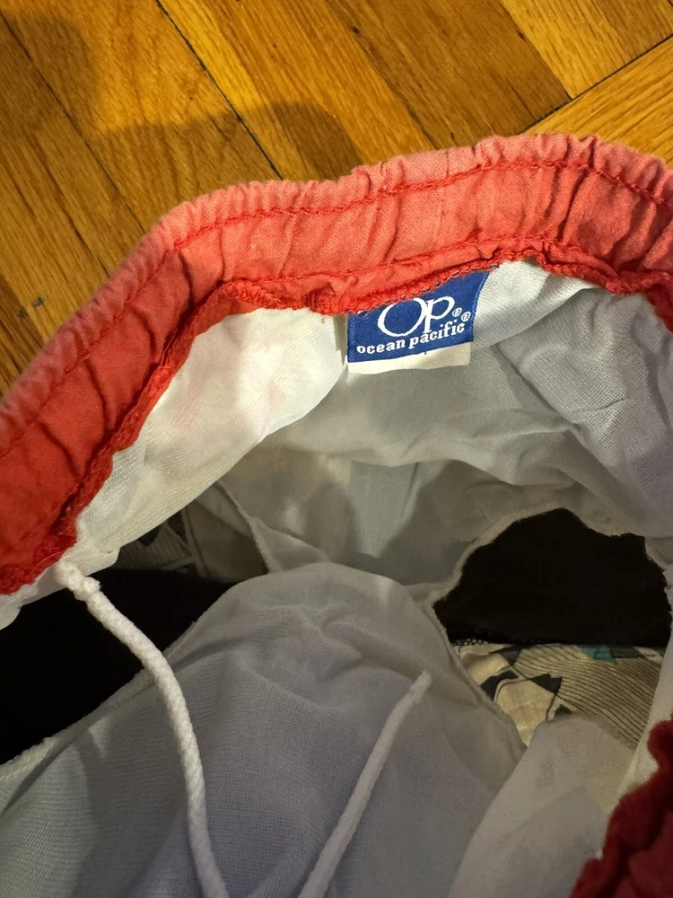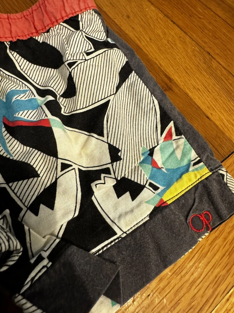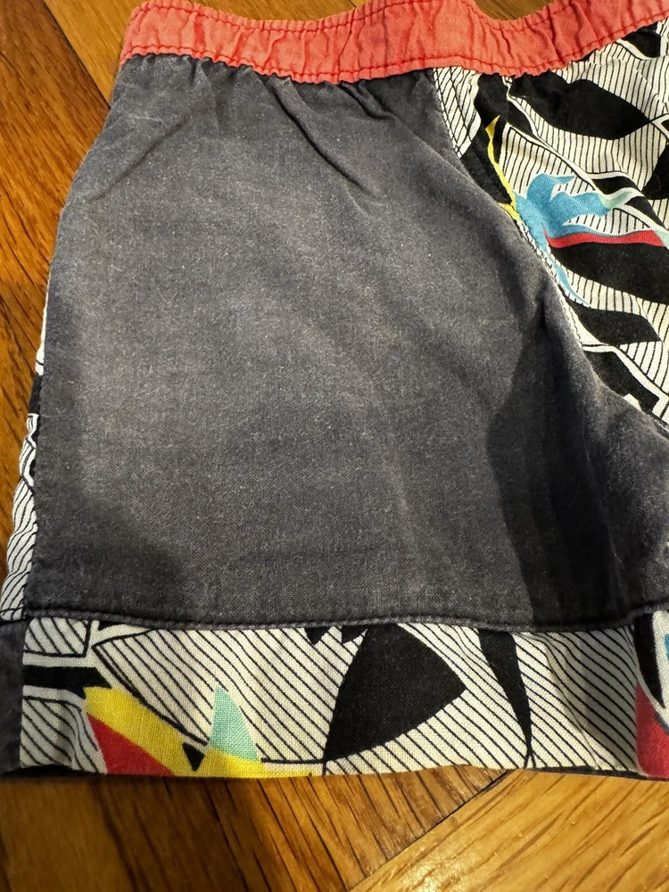 Good used condition. Mesh lining inside, shown. The waistband has some elastic but keep in mind these are very old. Does have a tie inside. Sold as is. Do not see any stains, rips, issues. Waistband across is approx 9 inches. Length is approx 9 inches long. Inseam approx 2 inches long.