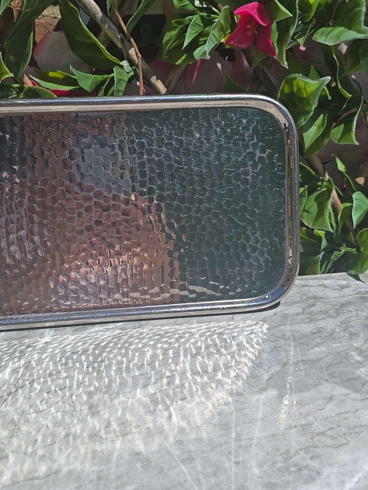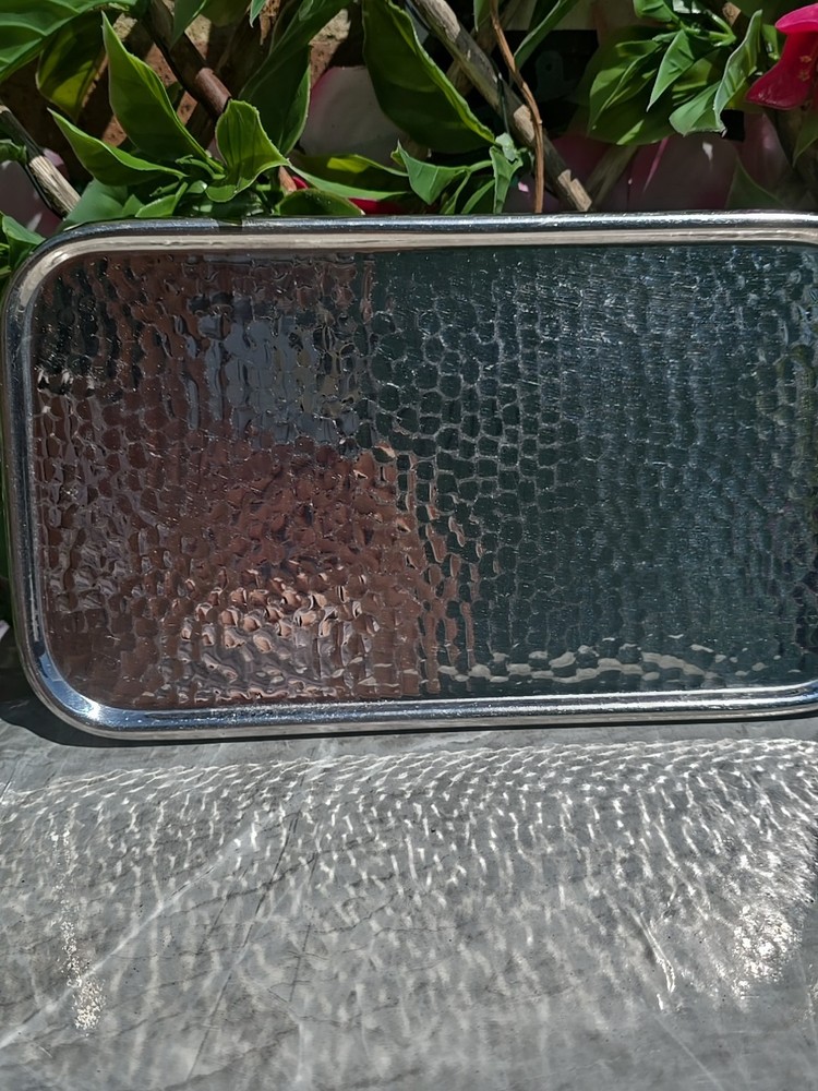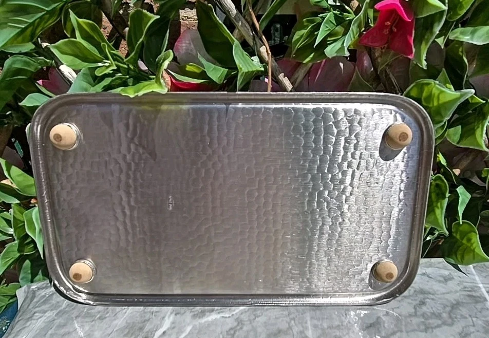 Very Good condition for age some slight surface wear This Vintage Old Hall Teapot Stand Trivet is a stylish addition to any dining table. Made from hammered stainless steel with rubber feet, this small stand has a glossy finish and a vintage/retro design. Perfect for all occasions, it adds a touch of elegance to your tableware collection. Crafted in the United Kingdom by the renowned brand Hall, this teapot stand exudes quality and charm, making it a must-have for any vintage enthusiast. Its silver colour and vintage theme make it a unique and functional piece of tableware.