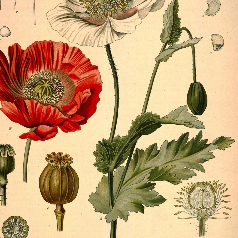 Amazing print of a 1887 botanical plant illustration of a Opium plant (Papaver somniferum L.) AKA Poppy Plant, Poppy Flower. Great wall art home decor for anyone who likes vintage illustrations. Great gift for anyone who likes poppy seed bagels, other opiates, is interested in old vintage retro antique drug decor. Frame not included. Actual color may vary slightly due to monitor settings. The poster: We print on museum-quality thick, durable, matte paper and use Canon Lucia 12 color pigment ink. These beautiful posters are printed on archival, acid-free paper. It's fingerprint resistant and perfect for framing. Rolled Canvas: This canvas print will come rolled and ready for framing or stretching on a gallery wrap frame. Wall Decals: Wall decals are printed on reusable peel and stick fabric vinyl. These wall decals are removable, restickable, resilient, and will not damage your walls. About shipping: We ship worldwide. It generally takes 1-2 days to process and ship from Vermont. Delivery within the USA is estimated at 2 - 10 days, outside USA is 5 - 20 days depending on country.