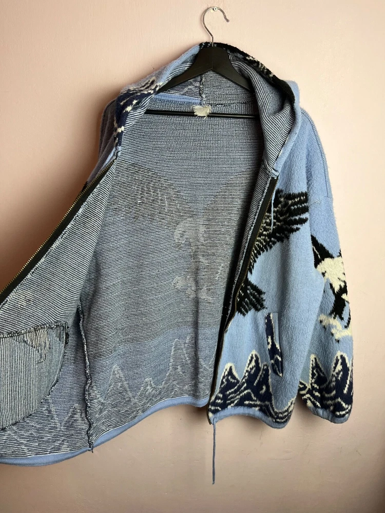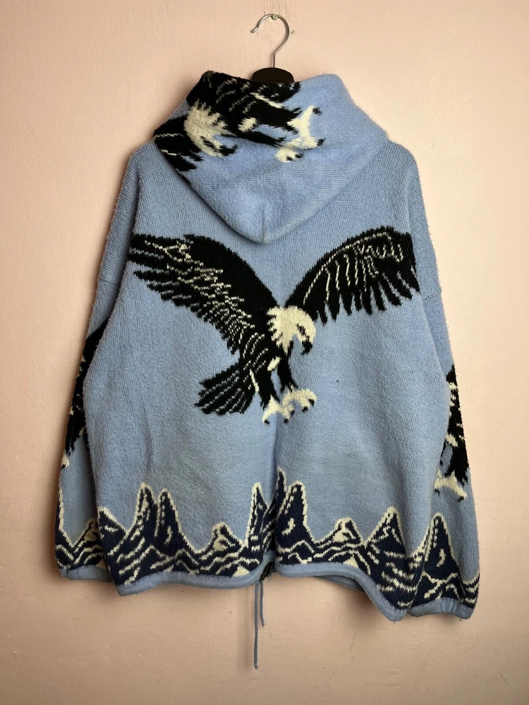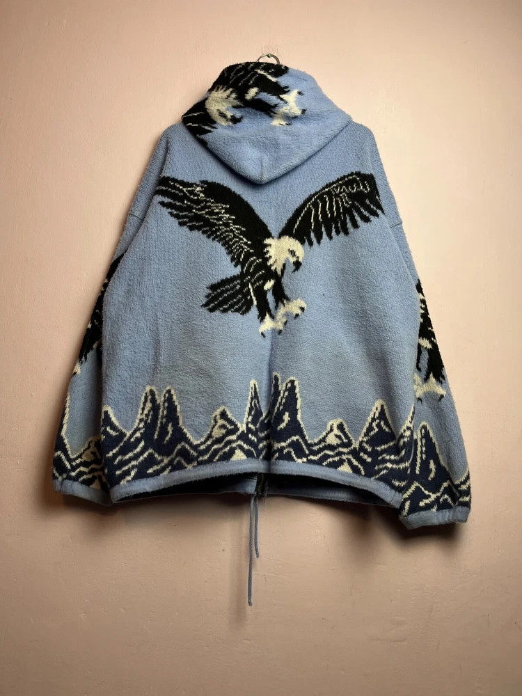 This vintage American Vintage Supreme Eagle Pile Wool Full Zip Fleece Jacket is a must-have for any fashion-forward man. The jacket is made of high-quality wool and features a full zip design, making it perfect for layering during the colder months. The blue color and bomber jacket style give it a designer, 90s vibe that is sure to turn heads. The jacket is XL in size and has a regular fit. The lining material is made of polyester, ensuring comfort and warmth for the wearer. With its unique features and fabric type, this jacket is perfect for anyone looking to make a statement with their clothing choices. Size XL Look at the photos! Fast Shipping! Chest 68 cm Length 72 cm Shoulders 75 cm