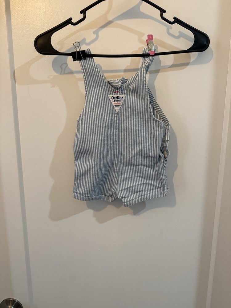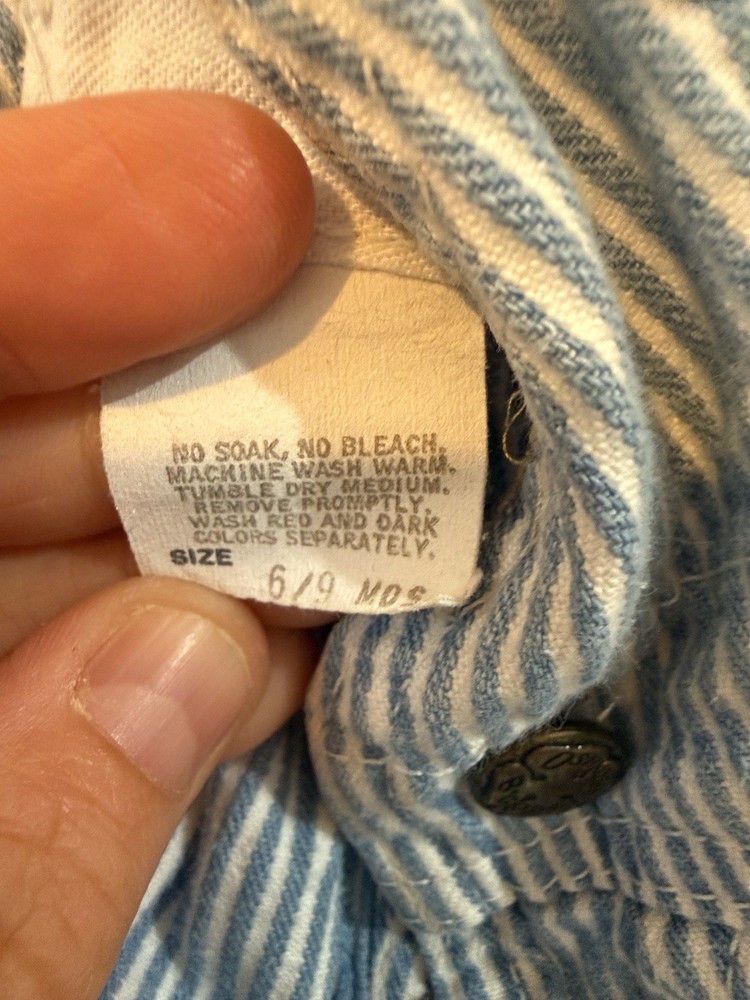Vintage OshKosh B'gosh Blue White Striped Denim Overall 6/9 Months