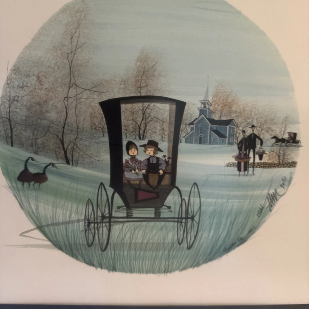 This vintage print by P. Buckley Moss is a true gem for art collectors. The piece, titled "Timeless Treasures," was produced in 1992 and features the artist's signature. The print is perfect for those who appreciate classic art and want to add a touch of elegance to their collection. The artwork showcases Moss's talent and expertise in creating timeless pieces that stand the test of time. The print is ideal for display in any room of the house and is sure to be a conversation starter. Whether you're an art collector or simply looking for a beautiful piece to add to your home, this vintage P. Buckley Moss print is a great choice.