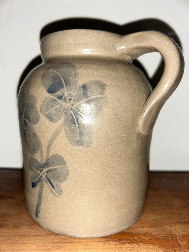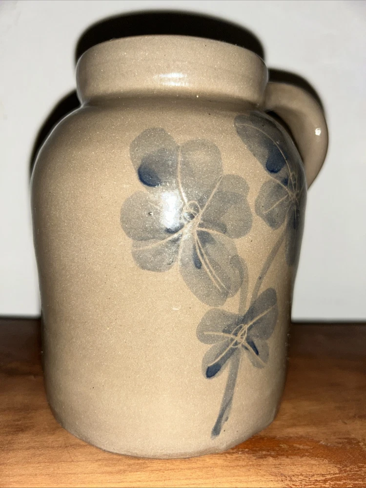 This vintage crock is a charming addition to any kitchen or collection. 6” tall and 4” in diameter with convenient handle, this crock is easy to carry and use. The beautiful blue flower decoration adds a touch of whimsy to the piece, making it a great conversation starter. Whether you're a collector or just looking for a unique piece to add to your home, this vintage crock is sure to please. Shipping Continental US only please.