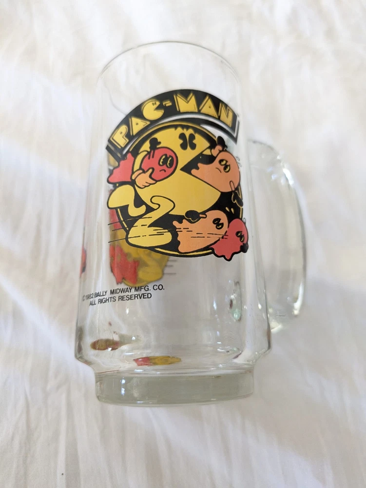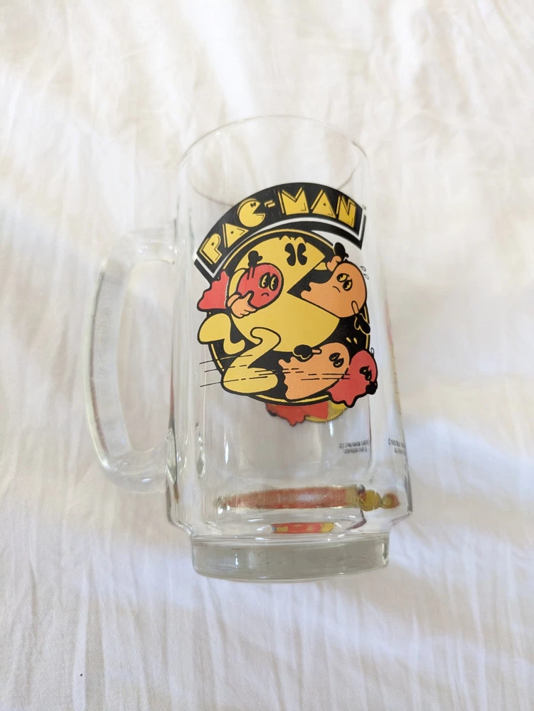 Vintage Pac Man Game Glass Beer Mug 1982 Bally Midway Video Game Arcade