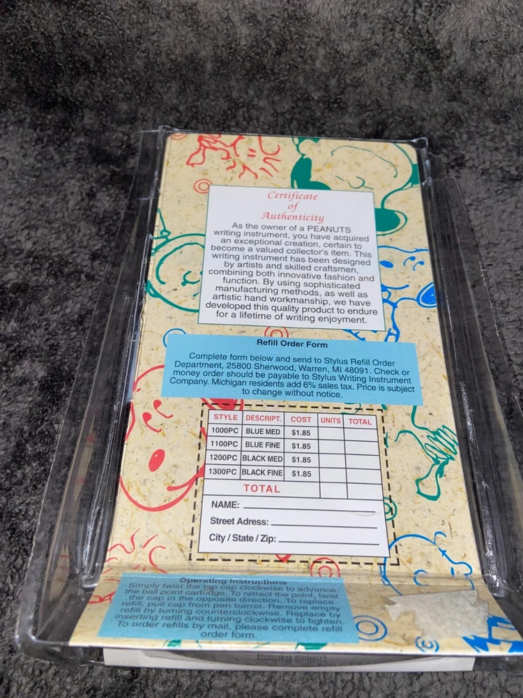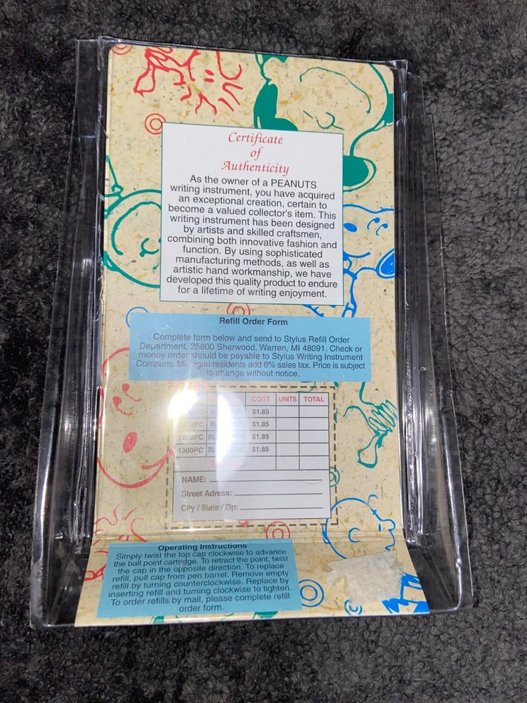 Vintage Peanuts Snoopy & Woodstock Collectors Pen With Case In Original Package Brand new still in original packaging. Feel free to ask any questions about this item, all of our items come from a smoke free environment.