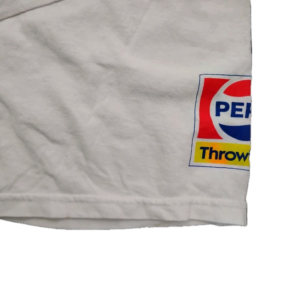 The product is a new without tag NFL Pepsi promo tee on a Gildan t-shirt in size XL. This shirt is part of dead stock inventory and features a promotional design related to NFL and Pepsi. The Gildan brand ensures quality and durability, making this tee a stylish and comfortable choice for any man looking to add a unique piece to their wardrobe.