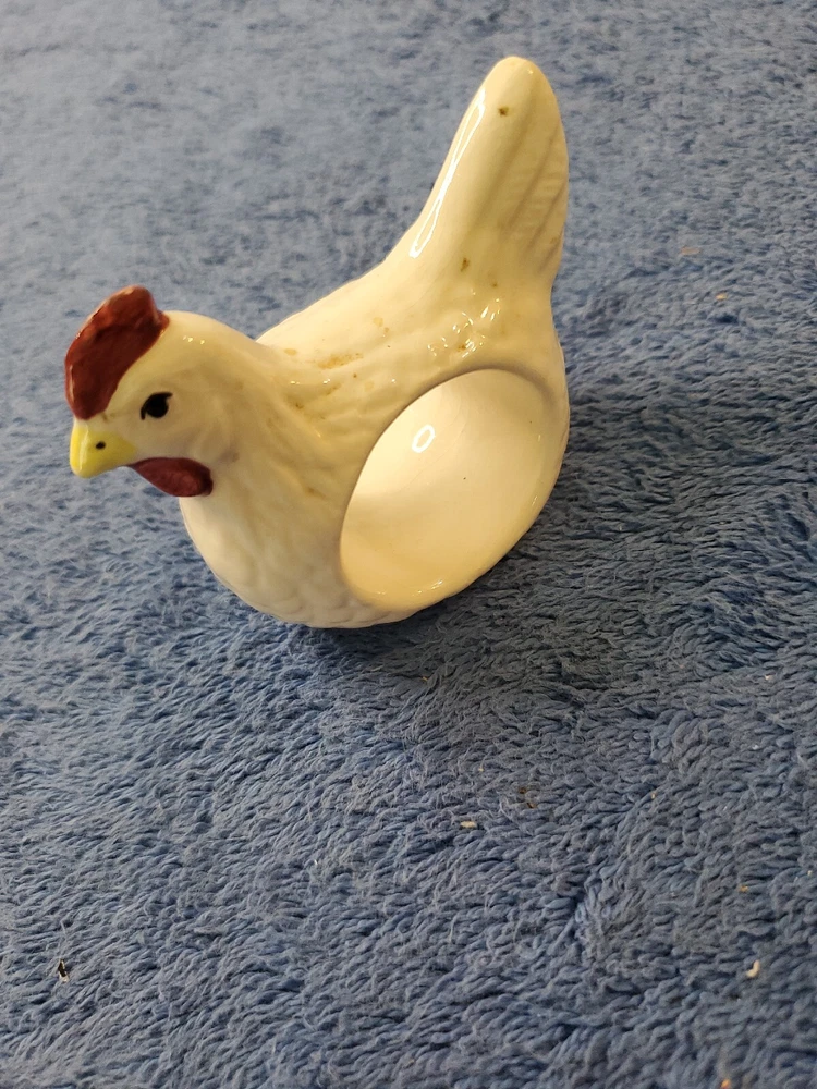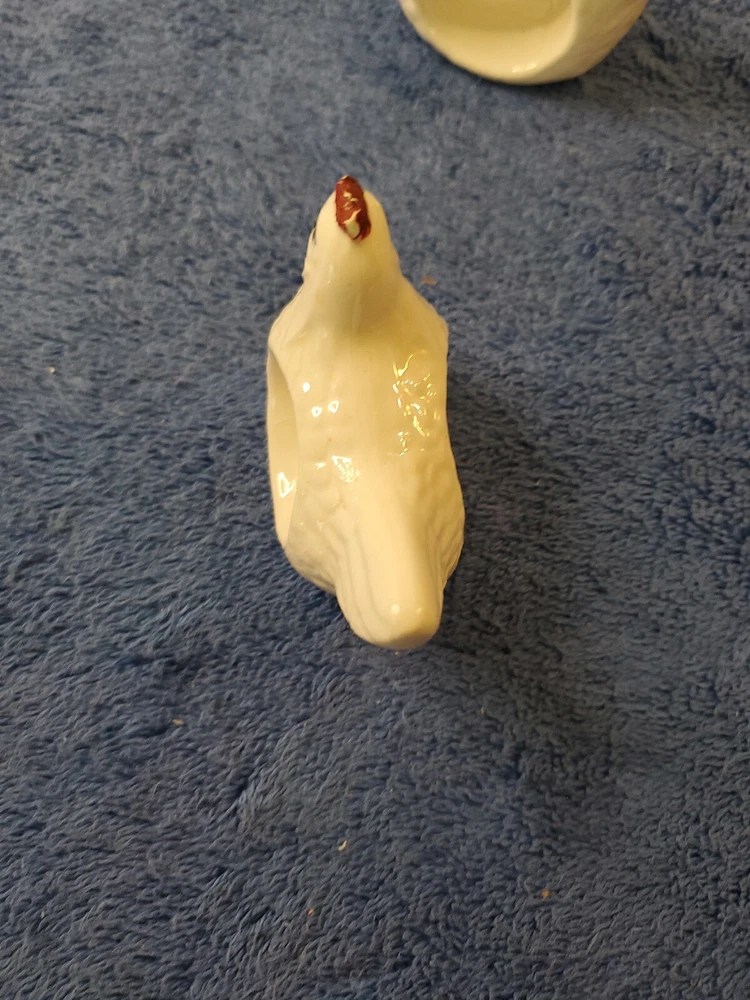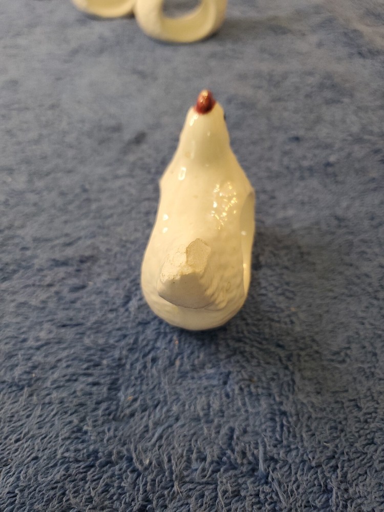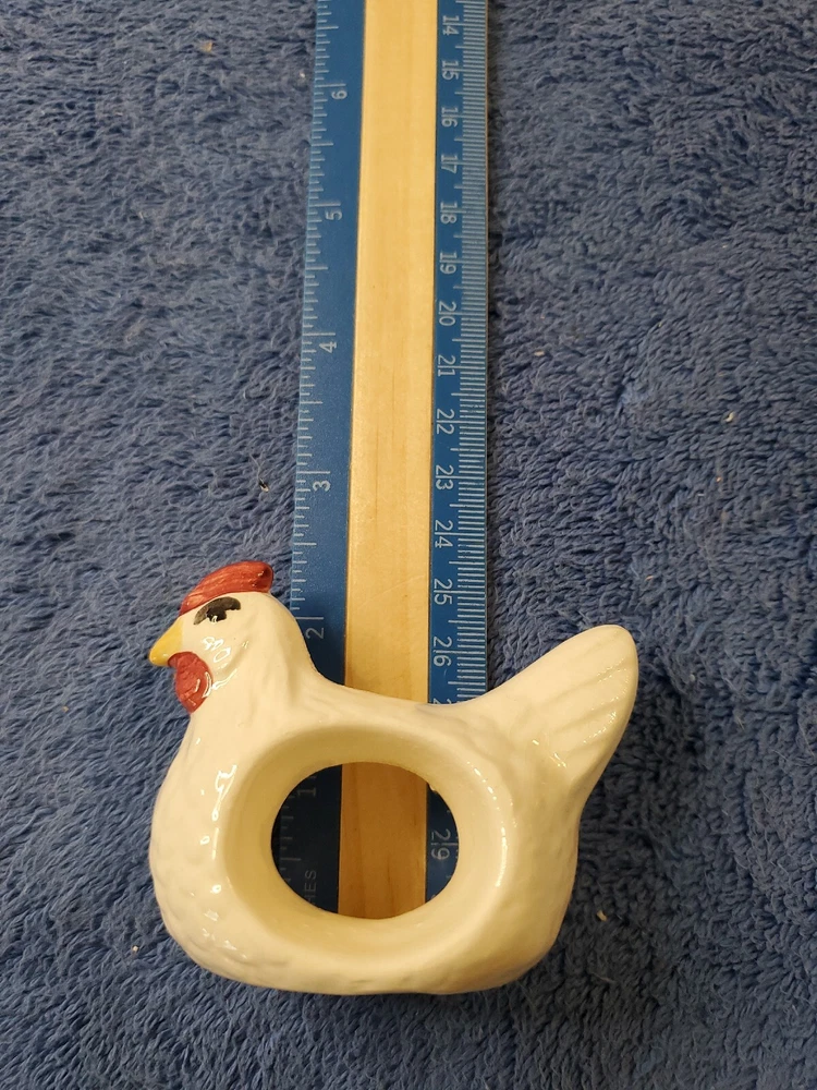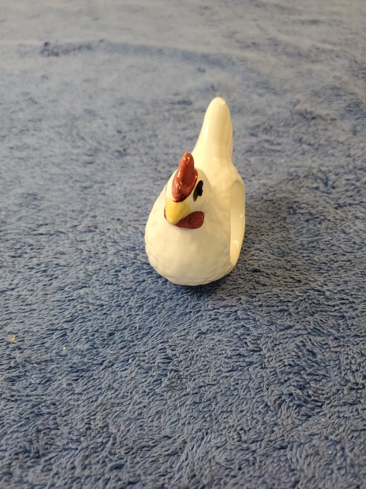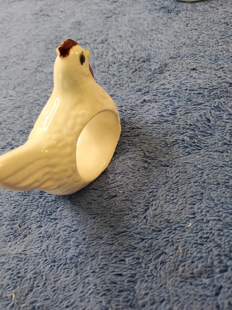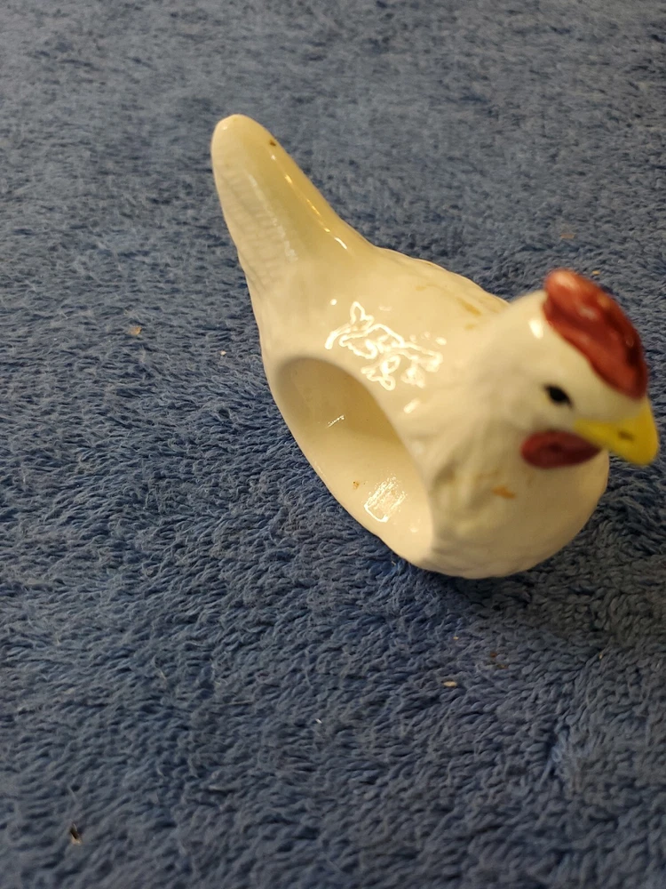 Vintage Chicken Set of 4 Napkin Rings Holders Metal Pewter. Please note one chicken has a chip on the tail portion. WILL SHIP IN A STURDY BOX. WE WILL COMBINE SHIPPING ON MULTIPLE ITEMS IF POSSIBLE. PLEASE CHECK OUT OUR OTHER ITEMS. THANKS FOR LOOKING.
