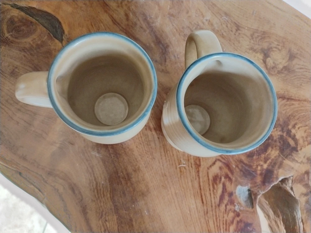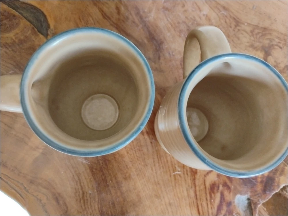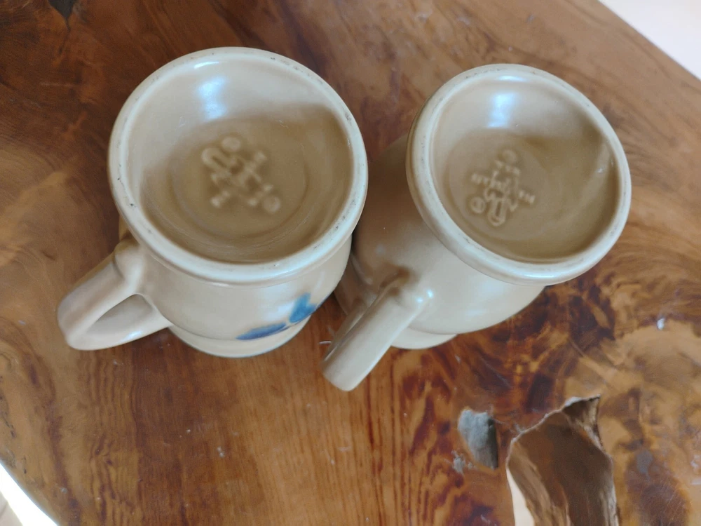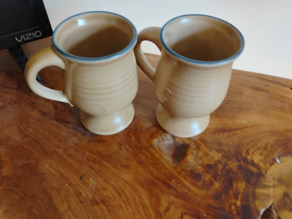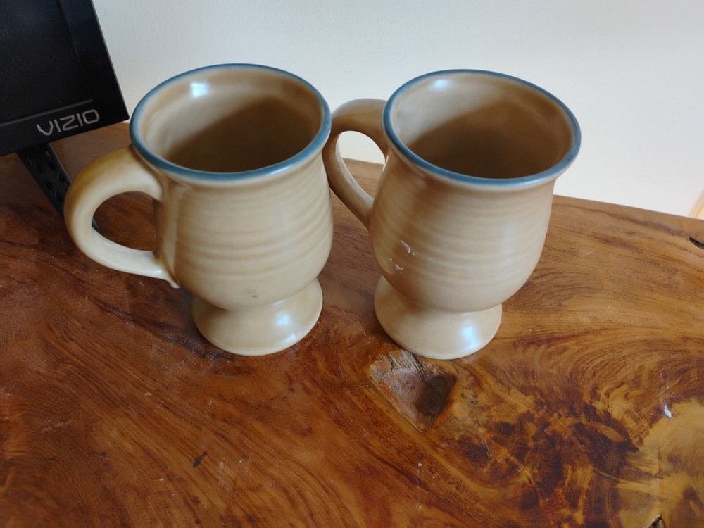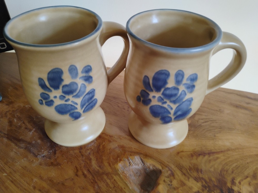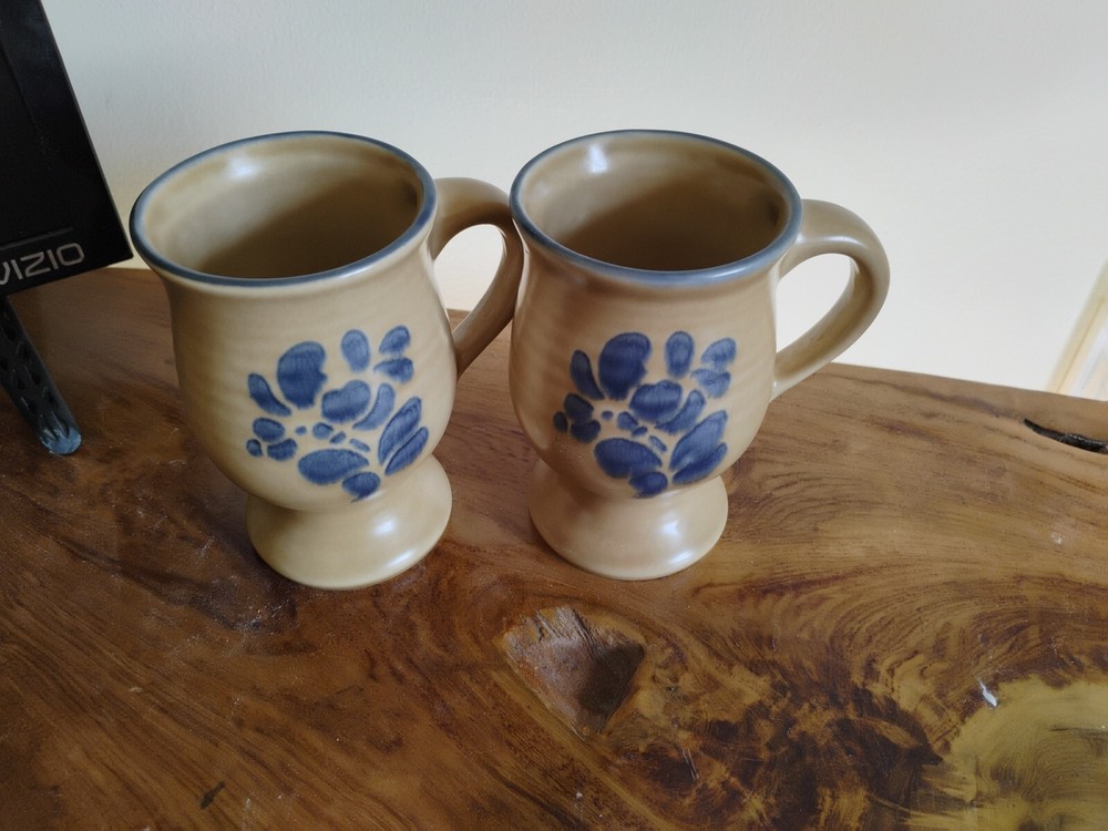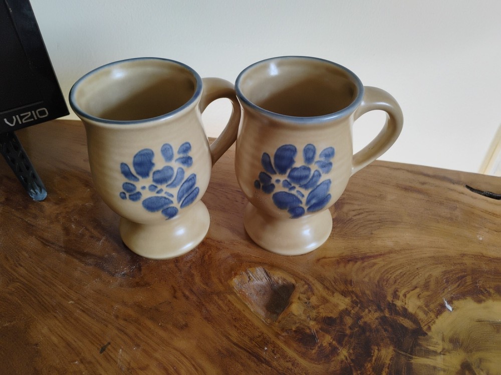 HomeVintage Pfaltzgraff Folk Art Stoneware Coffee Mug Set of 2 Footed Pedestal 5 Inch