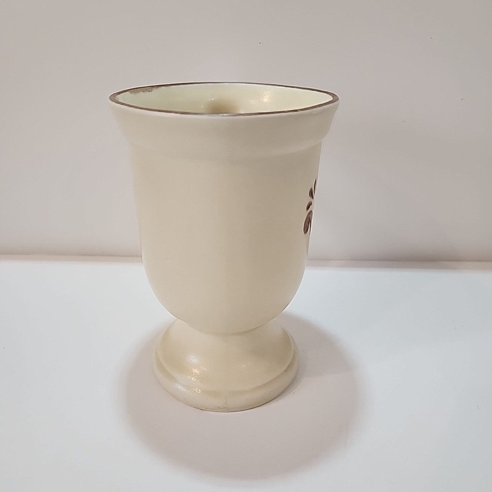 The vintage Pfaltzgraff Village Irish Coffee Mug is a vintage stoneware coffee mug featuring a cream tan and brown color with a floral pattern. It has a diameter of 3 1/2 inches, a height of 5 1/4 inches, and a capacity of 10 ounces. This original Pfaltzgraff piece from the 1970s is microwave and dishwasher safe, making it a practical and decorative addition to any household. Crafted in the United States using pottery techniques, this contemporary style mug is perfect for all occasions and suitable for both men and women. Made in the USA. A small chip or defect at the base as shown in last picture. Please see all pictures and zoom in for a good look at this item.
