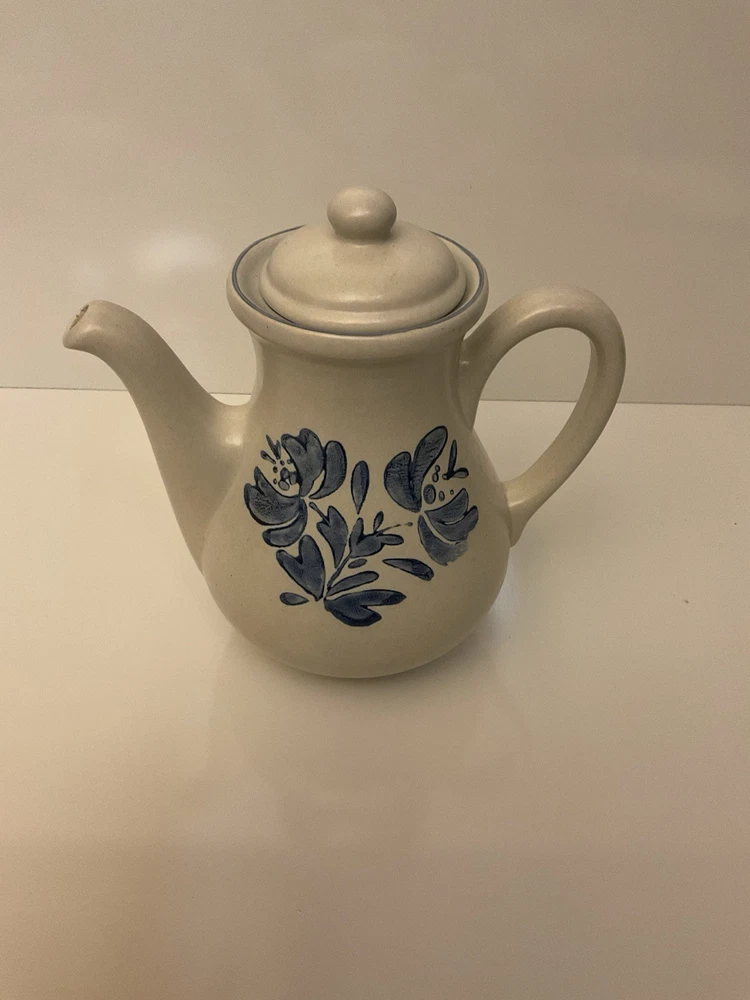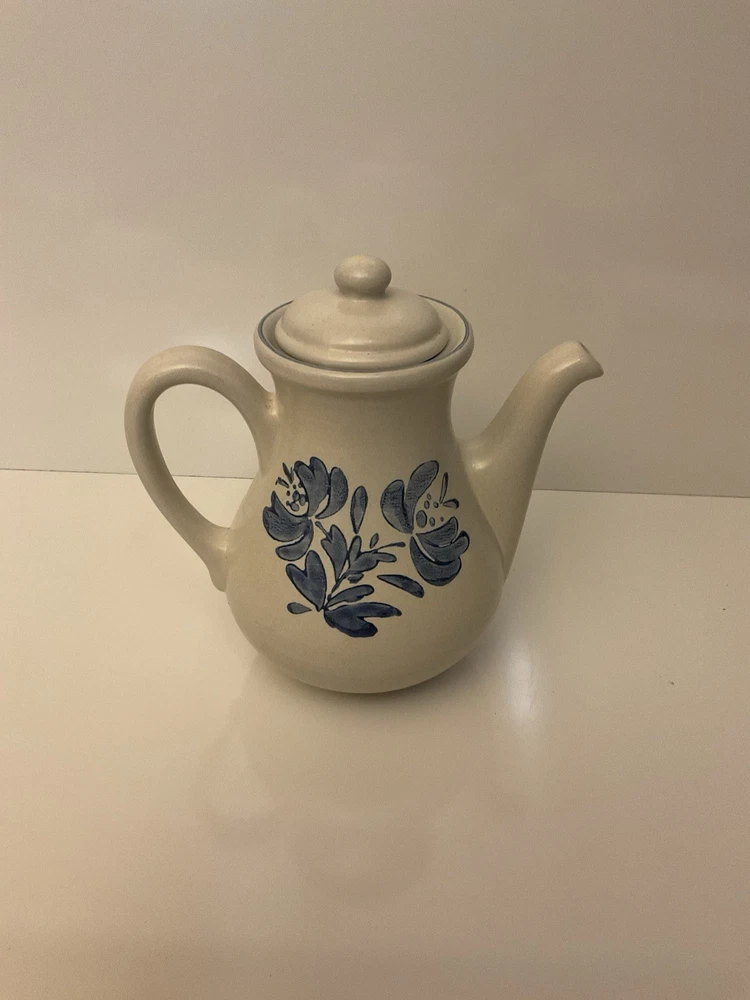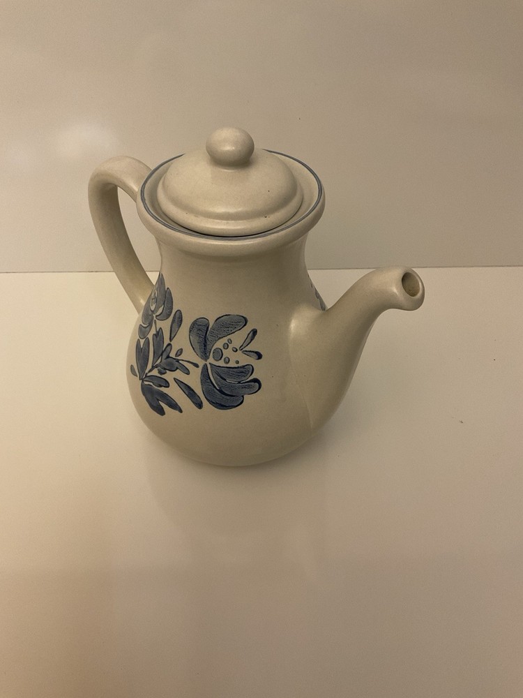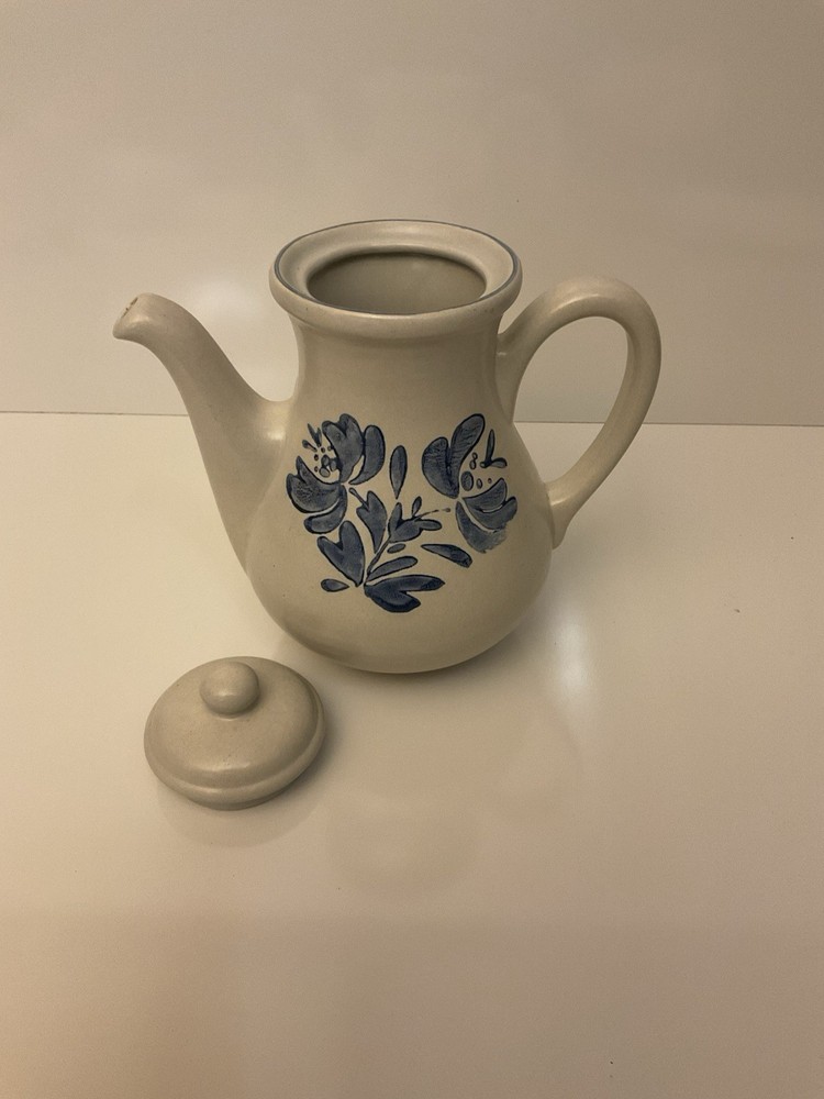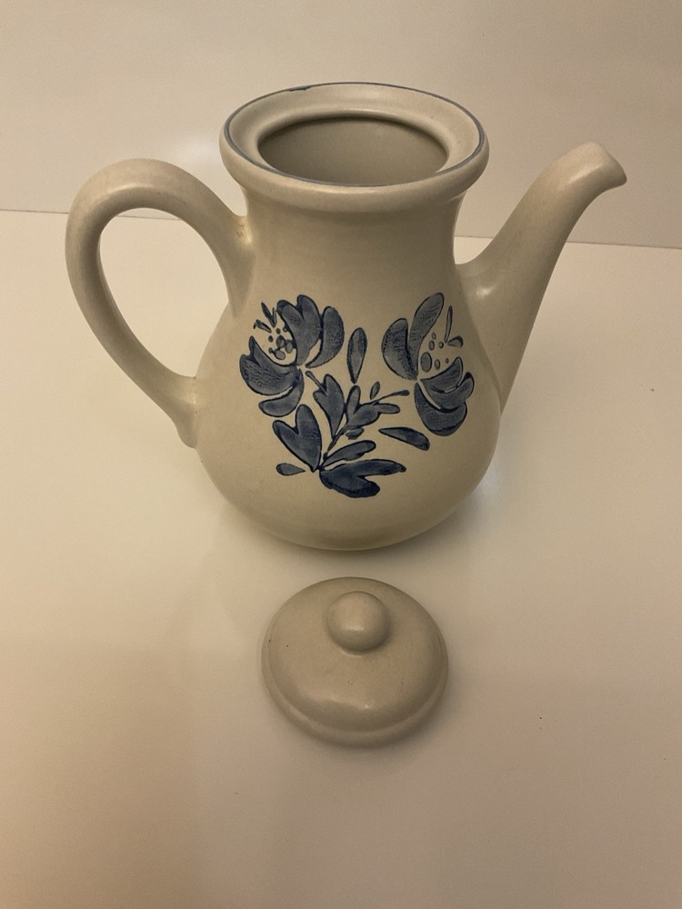 The Vintage Pfaltzgraff Yorktowne 48 oz Teapot Coffee Pot Lid in Blue Floral is a charming addition to any kitchen or collection. Made of stoneware in the United States during the 1970s, this round, medium-sized teapot features a semi-matte finish and hand wash care instructions. The blue floral pattern adds a touch of vintage style to your tea or coffee service, making it a unique and collectible piece for those who appreciate 1970s decor and quality craftsmanship. With its 48 oz capacity and lid included, this teapot is both functional and decorative for tea enthusiasts and collectors alike.