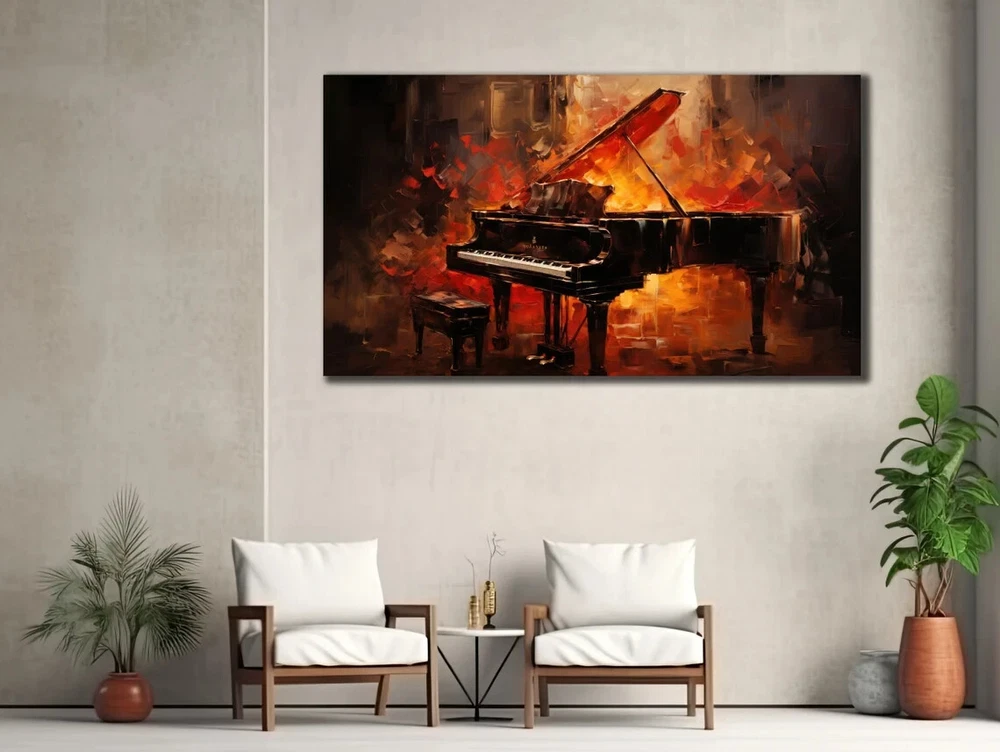 Vintage Piano Vibrant Abstract Paint Unframed Canvas Print Australian Wall Art
