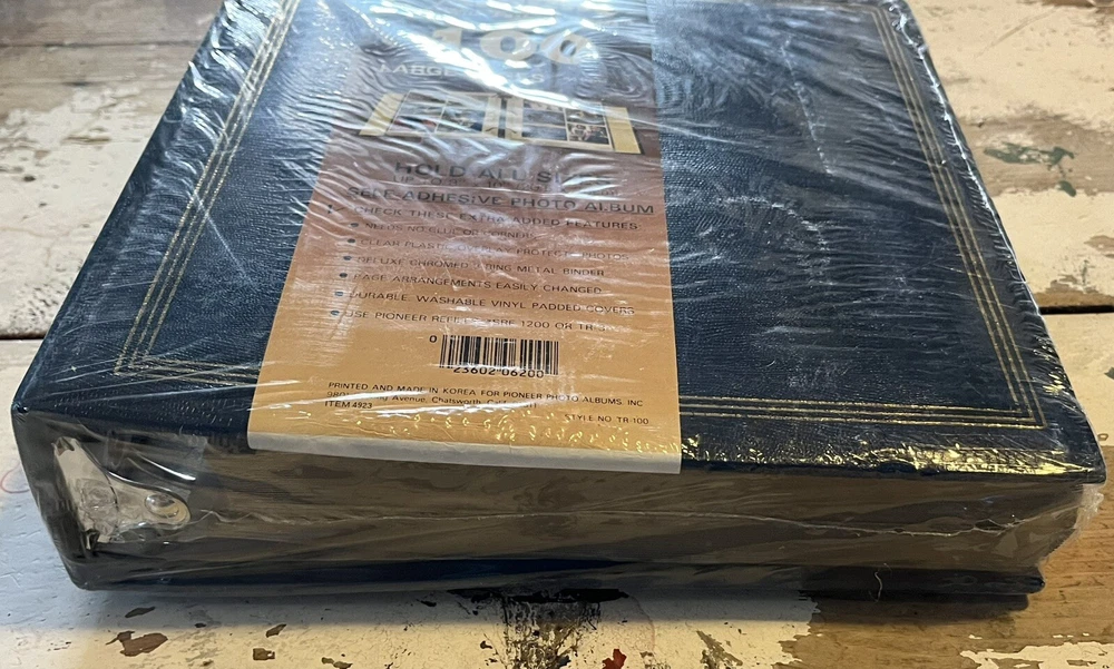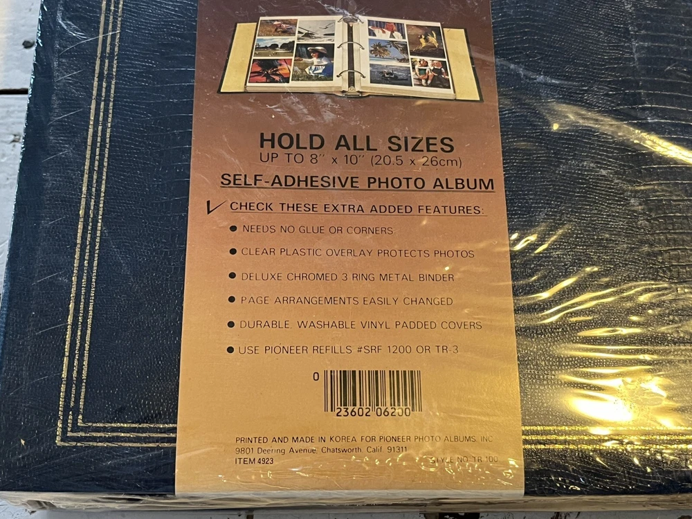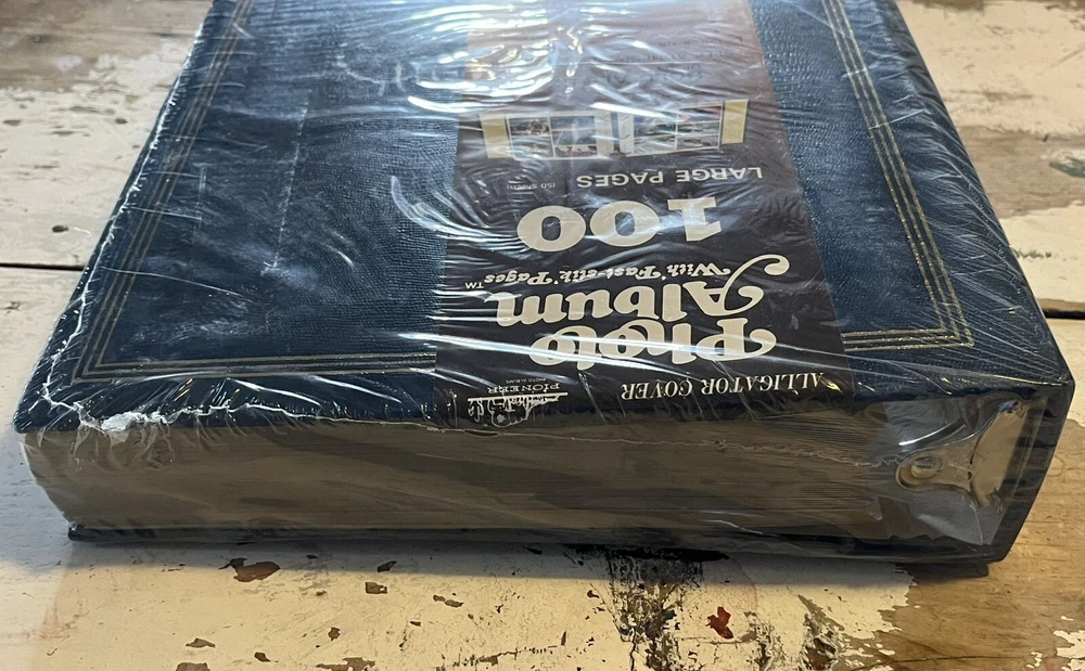 Elevate your cherished memories with the Vintage Pioneer Photo Album, boasting a distinguished navy blue vinyl cover that evokes a classic feel. This self-adhesive album, designed with a ring binder format, is an ideal keepsake for those who appreciate the elegance of vintage-themed photo storage. With 100 large pages, it accommodates photos up to 8x10, ensuring your moments are displayed with a touch of nostalgia. Crafted in Korea, this photo album stands as a testament to quality and timeless style. The alligator skin texture adds an extra layer of sophistication, making it not just a place to store your photos, but a piece to showcase alongside your favorite memories. Whether it's for personal use or a thoughtful gift, this Pioneer album is a true gem for preserving life's precious moments.