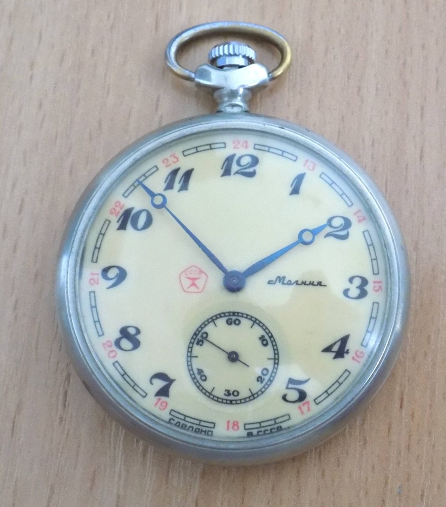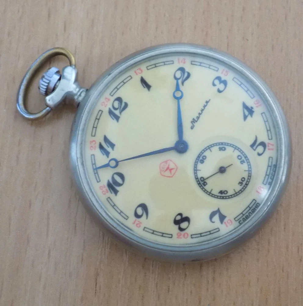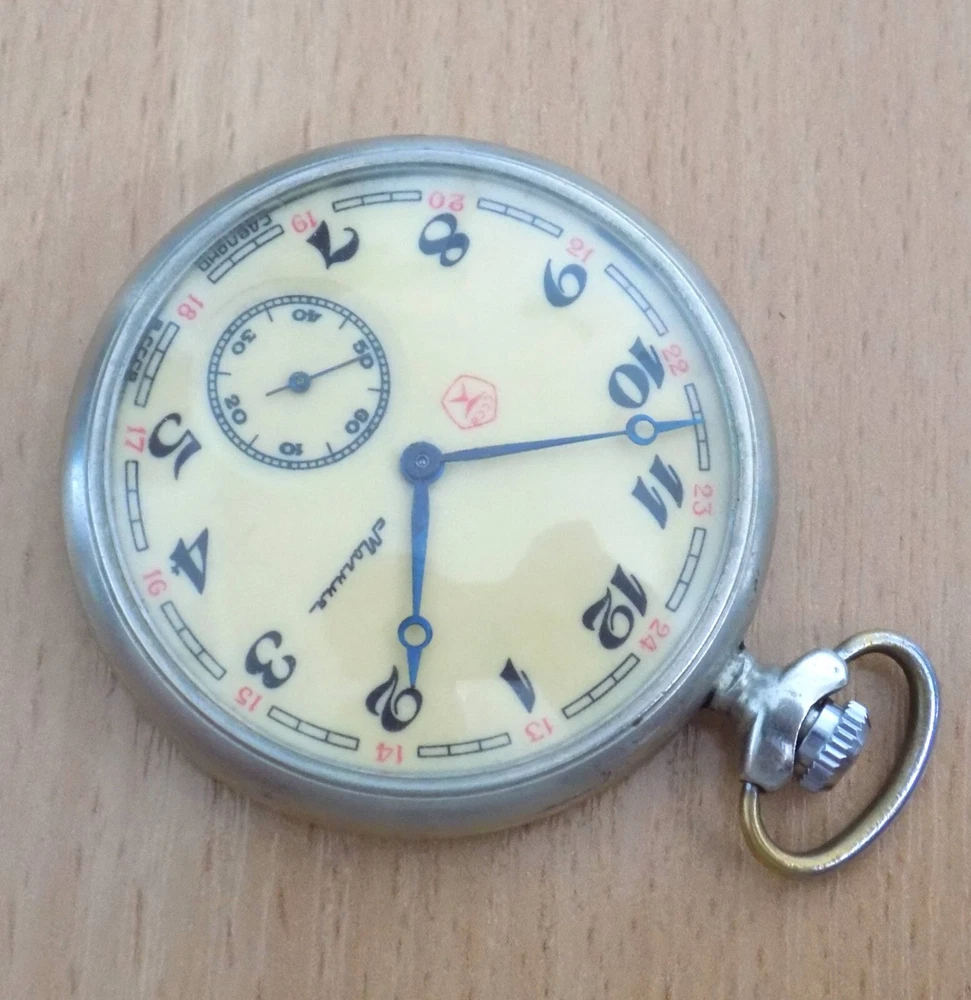 Vintage pocket watch Molnija is mechanical pocket watch. You will buy fully working vintage pocket watch which keeps good time. Men's Soviet pocket watch is a type of watch designed to be carried in a pocket. This vintage USSR pocket watch Molnia will be perfect gift for men. Perfect cosmetic condition. Features of men's Soviet pocket watch Molnija: Brand: Molnija (Molnia); Mechanical watch, 18 jewels; Caliber (movement) # 3602; Diameter of case - 50 mm / 2 inches ; Serviced, keeps good time; Made in USSR ( Soviet Union ). Original USSR vintage pocket watch Molnija. You can find other Soviet, USSR , Russian watches in my shop. I sell only original old watches in working condition. Free of customs duties for all US orders, taxes are paid by me. All US orders are shipped DDP (Delivered Duty Paid), no customs fees for buyers.