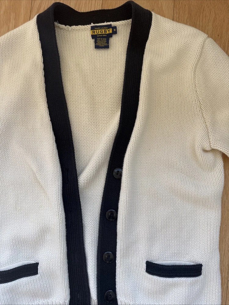 Vintage Ralph Lauren rugby est. 2004 size small knit sweater cream and black