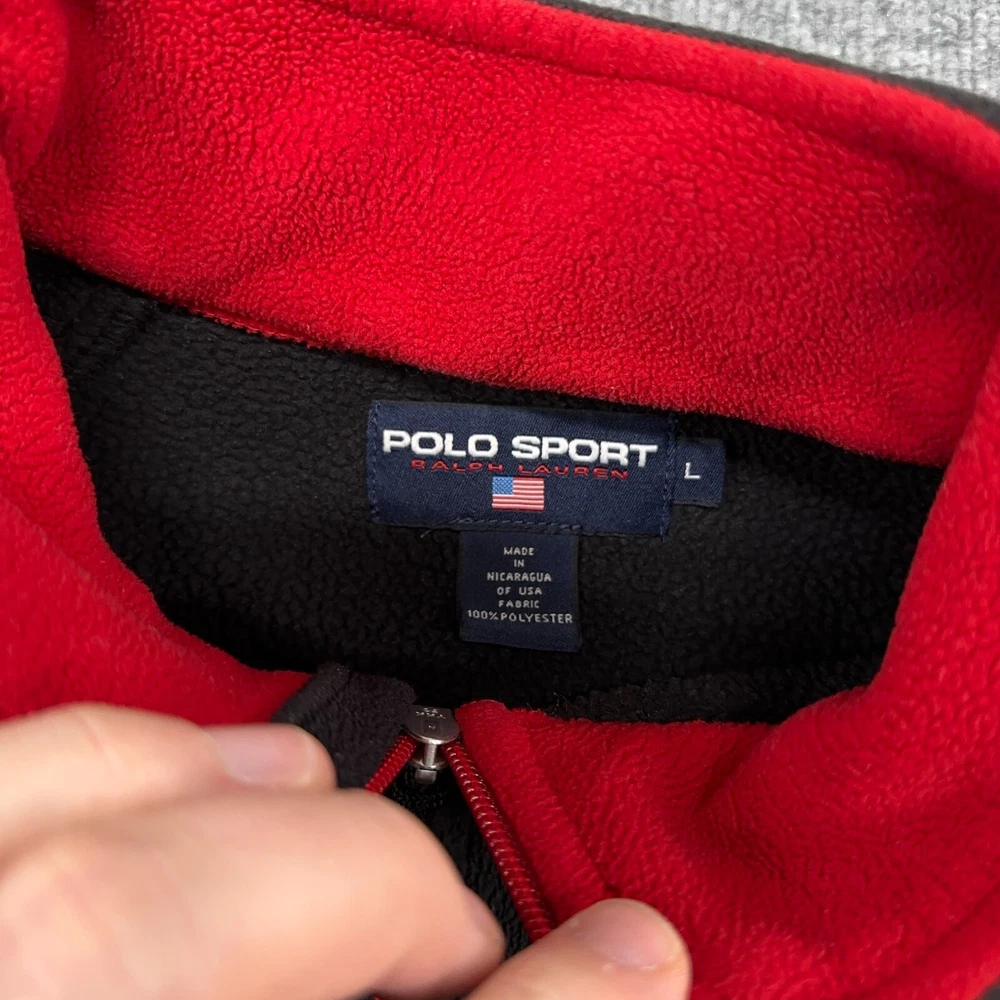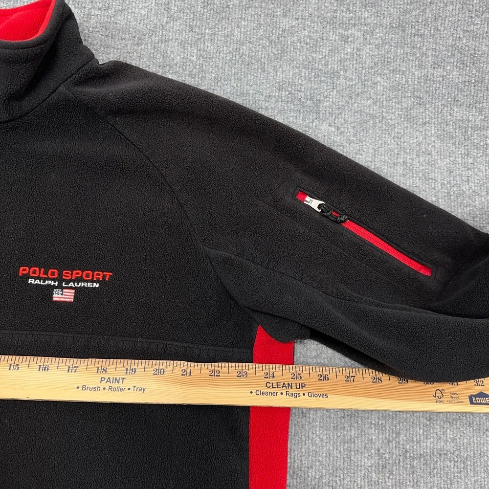 Vintage Polo Sport Ralph Lauren Jacket Mens L Black Fleece 1/4 Zip Pullover Flag In good condition. Please see photos for measurements.