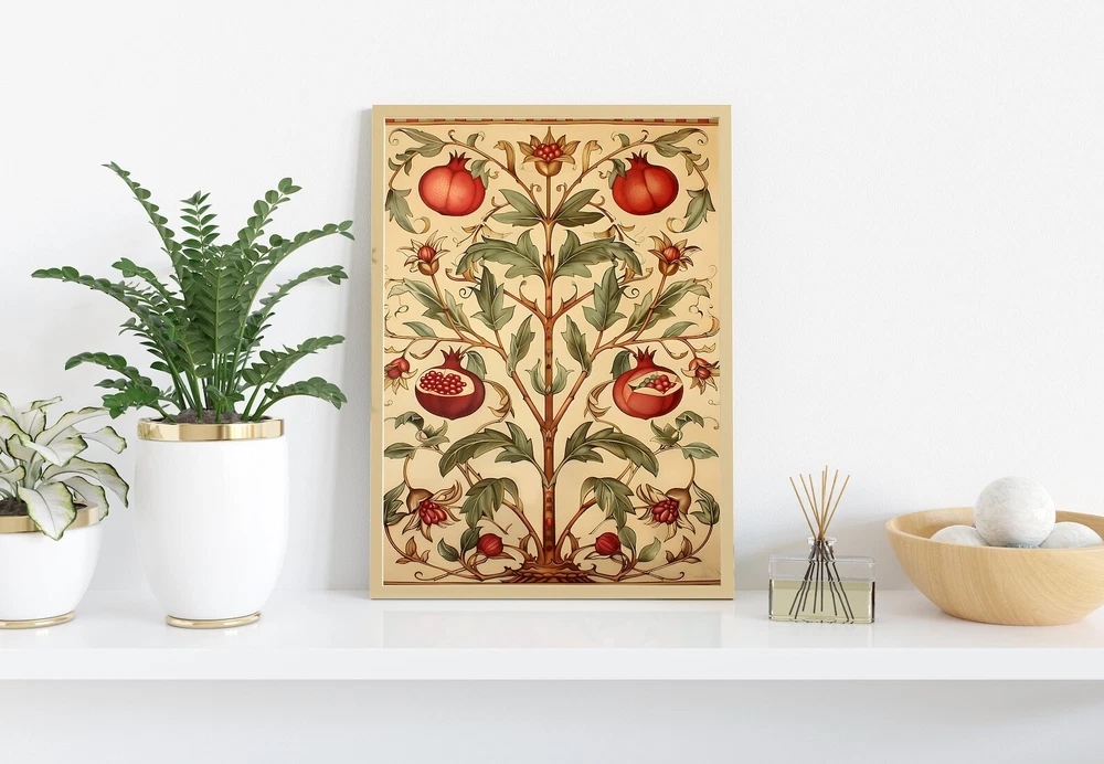 Vintage Pomegranate Art Print European Fruit Tree Painting Retro Wall Decor Botanical Artwork For Home Kitchen Material: Premium luster photo paper Print type: Inkjet printing One side printed + The finish provides the highest possible resolution and color saturation + Lasts up to 200 years in color and 400 years in black-and-white + Printed on high-quality resin-coated photo base paper medium + Posters can be hung with double-sided tape, tacks, or framed + Hand washing with a gentle cry cloth is recommended for extended durability I will hand select the best choice of paper for your chosen design to ensure top quality results for a beautiful, bright and luxurious print. All prints are sealed in cellophane slips for protection during transportation, and are shipped in a protective cardboard envelope.