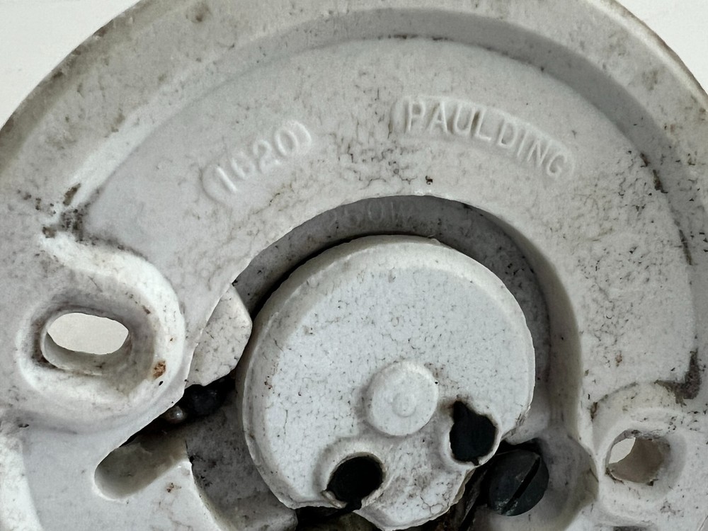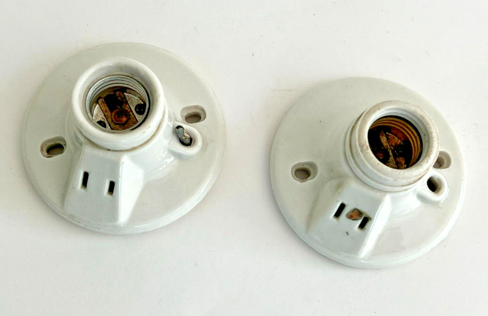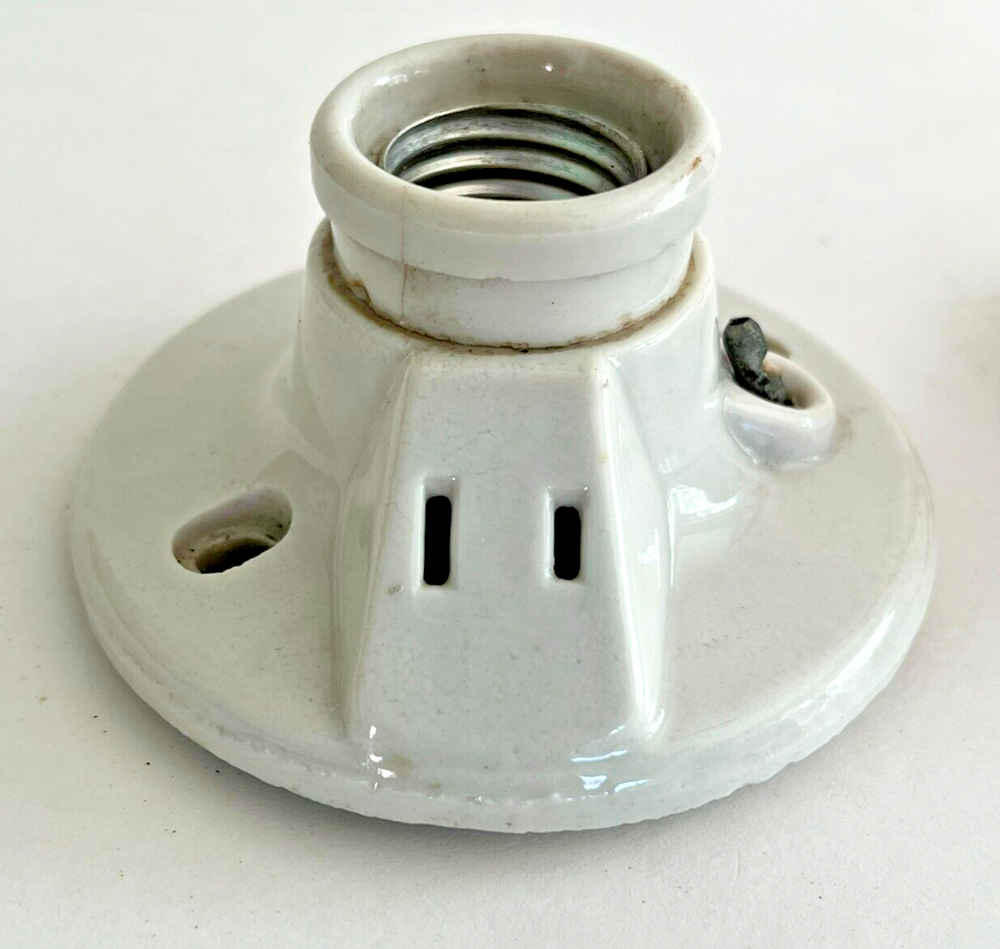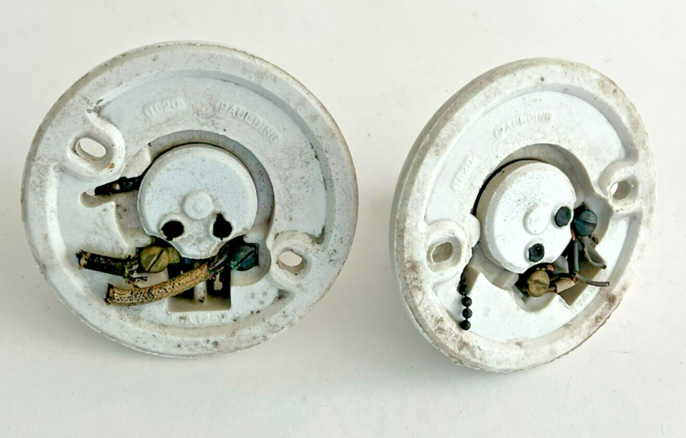 Vintage Pair Of Porcelain Light Bulb Socket Fixtures By Paulding #1620 They have a diameter of approximately 4" and are 2 1/2" tall In vintage condtion. They both have their original pul chains although one does have the end so it doesn't stay through the hole. It also has an area of porcelain loss at the plug. Both have roughness and crazing lines. Please see photos. FAQs All items are examined and every attempt is made to describe them completely and accurately. However, most items are antique/vintage, and by virtue of their age will not be perfect. They are previously owned and may show very fine handling marks and shelf wear and will not be perfect. Upon receipt if you have any concerns please contact me! If for any reason you are inclined to rate your experience less than five stars contact me first - lets discuss. Customer support is important to me as is your satisfaction! Combined Shipping? Yes, we do, and you will save $$ when you buy more than 1 item from us. Will my item be insured in transit? Yes, automatically by Ship Saver, the Post Office or Self Insurance. How will it be packed? Professionally! In bubble wrap with plenty of clean, recycled products and packaging tape for security. How can I pay? PayPal or other- Contact us if you need other payment method. Sorry, but after 7 days' of non-payment, eBay gets involved. Any issue, please talk to us! THANK YOU for shopping with P-B-Antiques