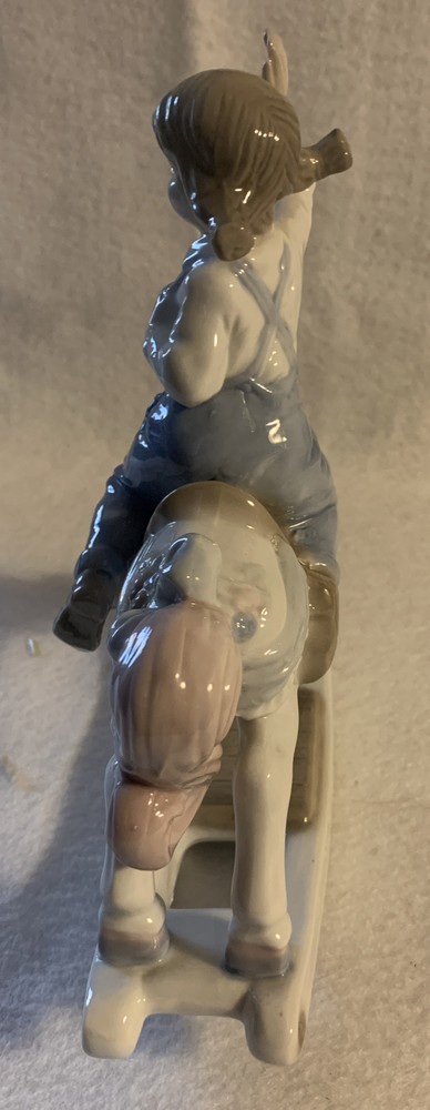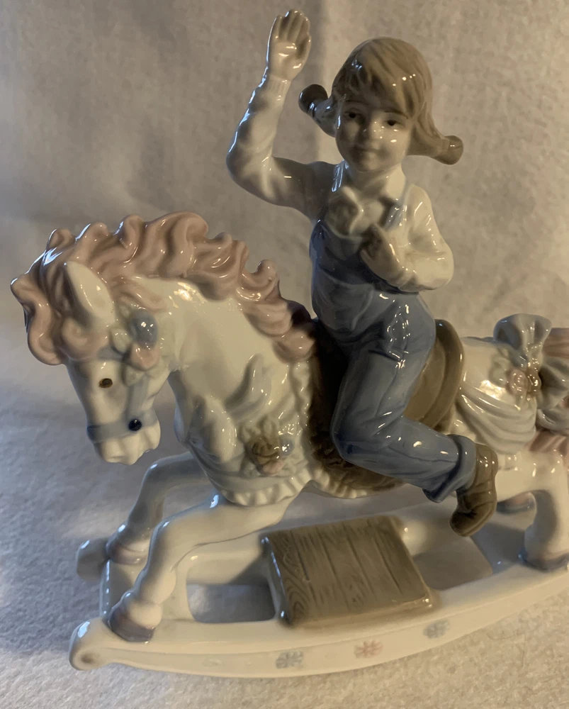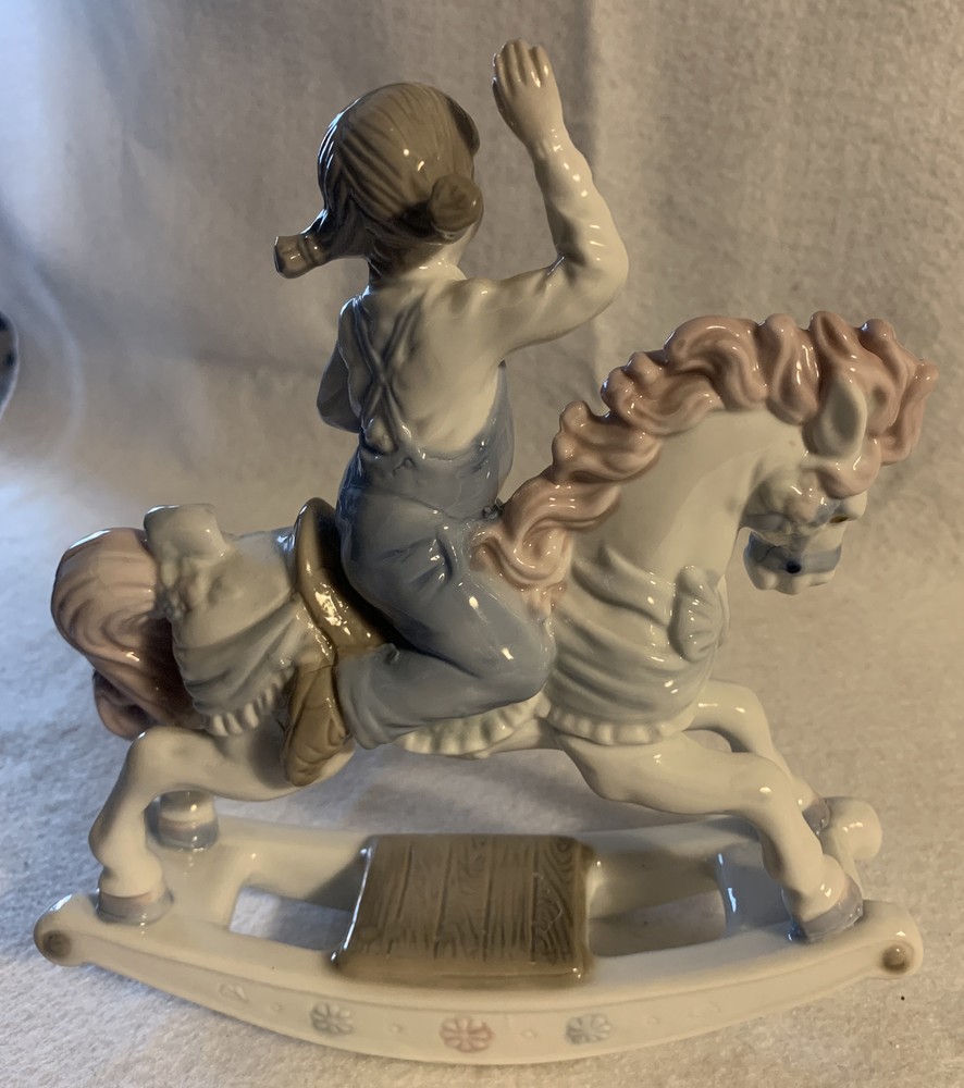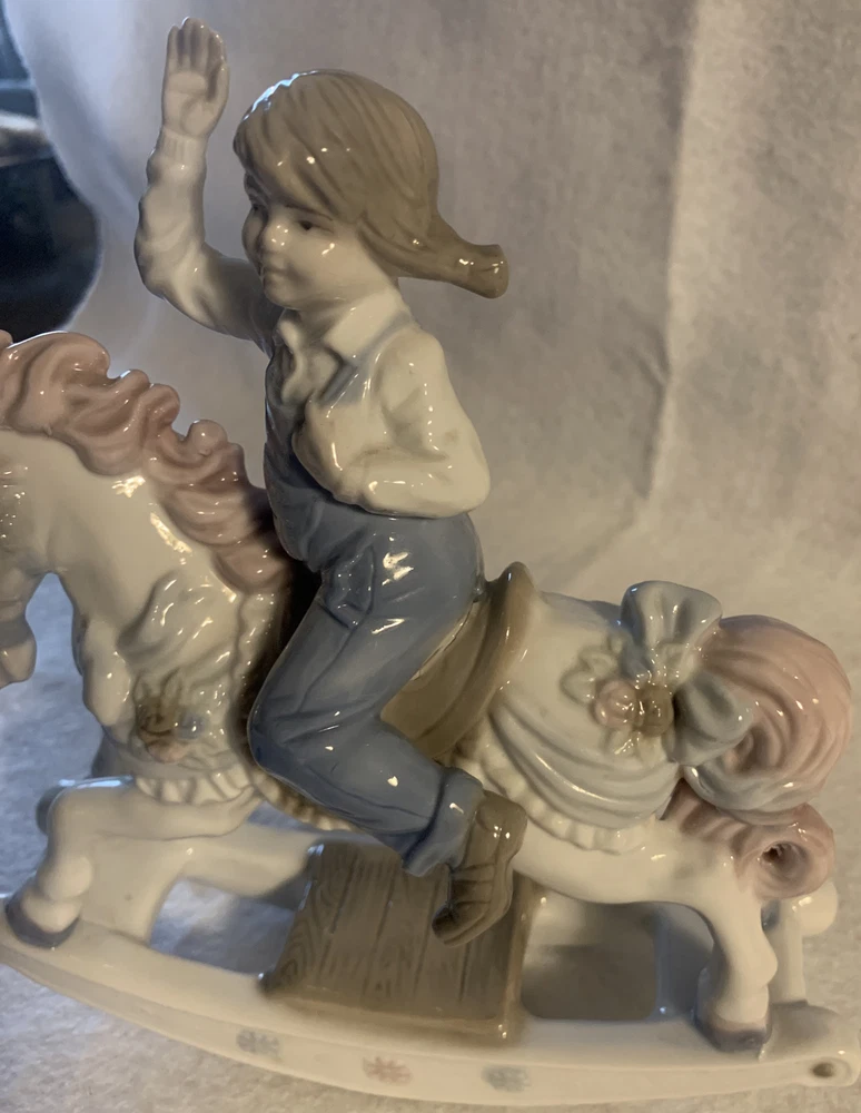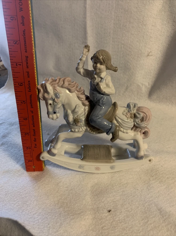 Vintage Porcelain Rocking Horse Girl Figurine by Paul Sebastion
