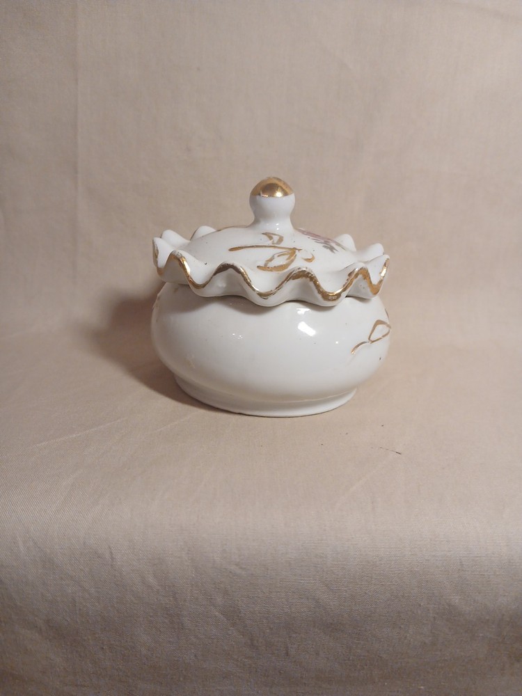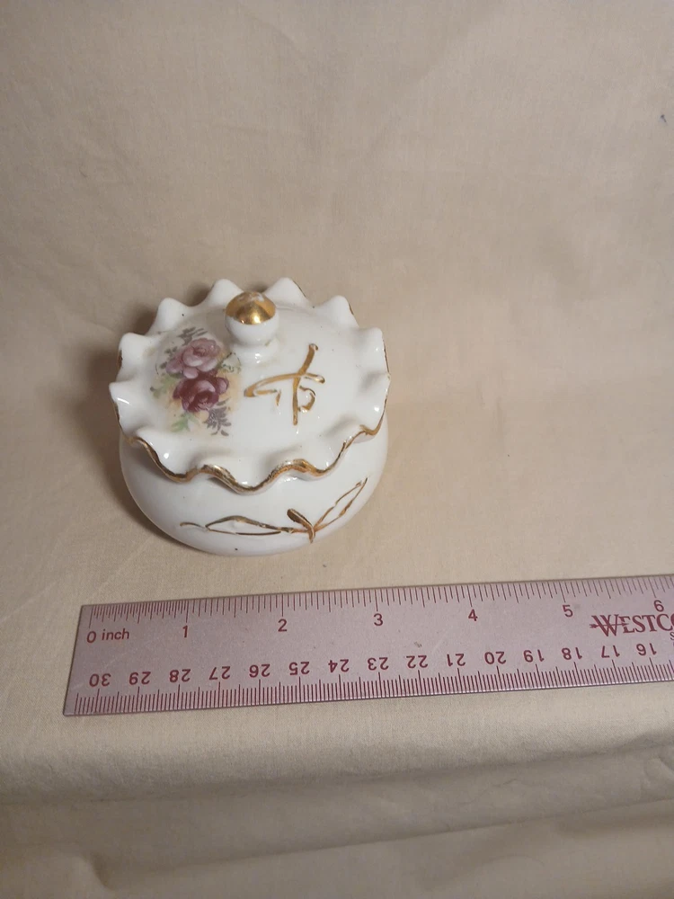 This vintage porcelain trinket jewelry box with a lid is a small round box suitable for furniture decor. It features a multicolor floral pattern and is made of porcelain, with a theme of art and romance. Perfect for any room, this original piece from the late 20th century is part of the Keepsake Boxes collection and comes boxed for gifting or storage. Ideal for adults who appreciate unique and nostalgic decor items, this jewelry box with a weight of 2 lb is a charming addition to any home.