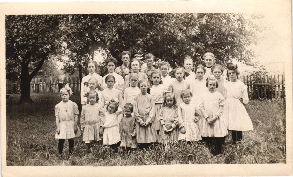 Vintage Postcard RPPC- A large family standing in a yard 1900s