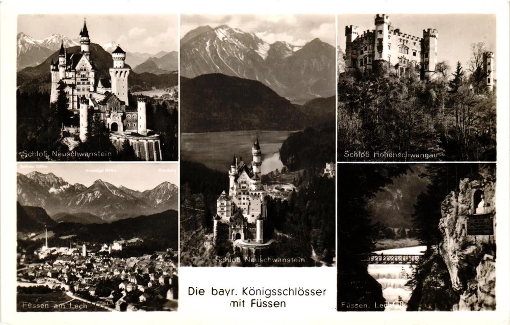 Vintage Postcard RPPC- Die bayr. Königsschlösser mit Füssen 1900s