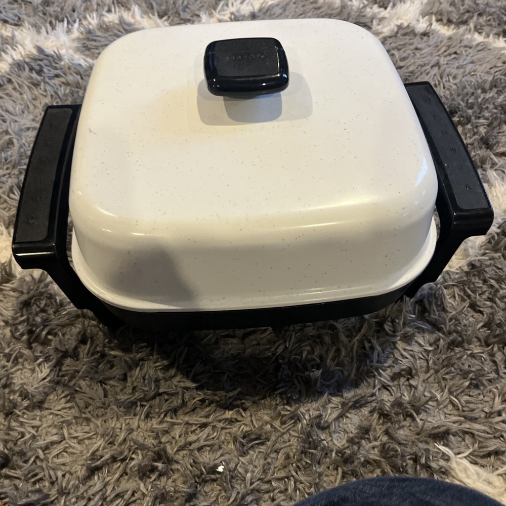 The Vintage Presto Electric Skillet Fry Pan Model: 0661743 is a classic kitchen appliance that offers convenient and efficient cooking. With its electric skillet design, this Presto skillet can quickly and evenly cook your favorite dishes, making meal preparation a breeze. The retro design and durable construction make it a reliable and timeless addition to any kitchen.