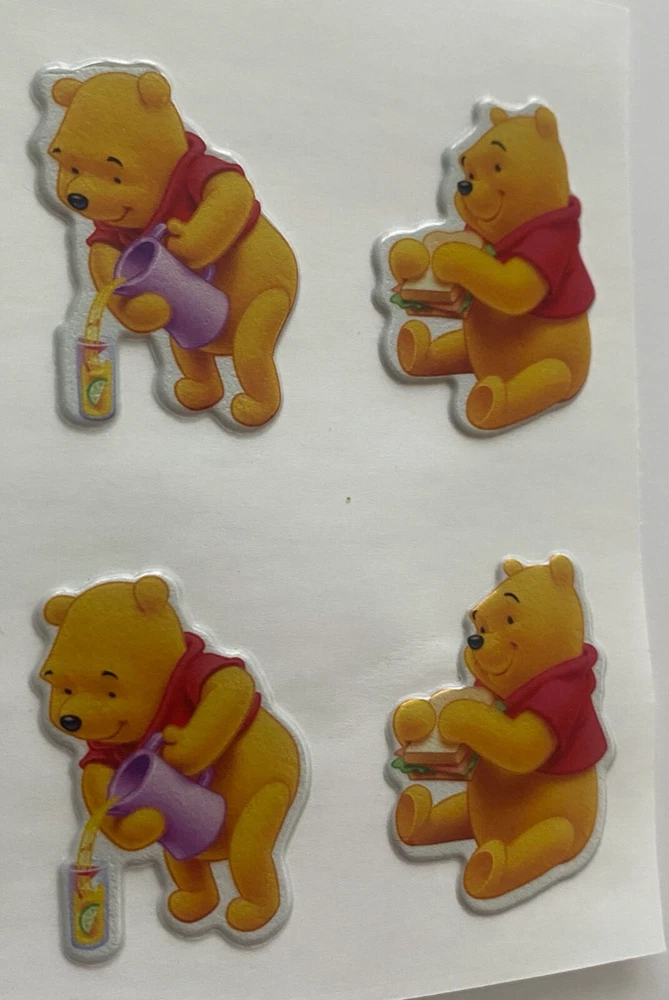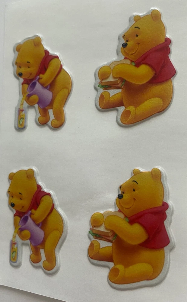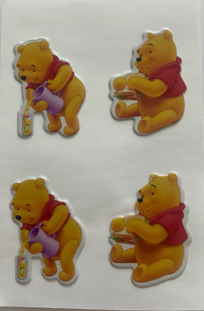 Vintage Set of 4 Count ~ 1990s Puffy Scratch N Sniff Winnie the Pooh Stickers -Scent is not guaranteed due to age, but I am still able to smell every sticker. :) Each sticker is carefully unstuck and ready for use. Limited Edition SET! The stickers I am selling are from my Grandmother & Great Grandmother's personal sticker collection. Most are from over 30/40+ years ago. They have been in photo albums, boxes and plastic bags. These stickers are very Rare & in great condition. COLOR MAY VARY FROM DIFFERENT SCREENS PLEASE ASK ANY QUESTIONS YOU MAY HAVE ABOUT THE COLORING OF THIS ITEM BEFORE COMMITTING TO PURCHASING IT PLEASE. Check out my other collections! Thank you.