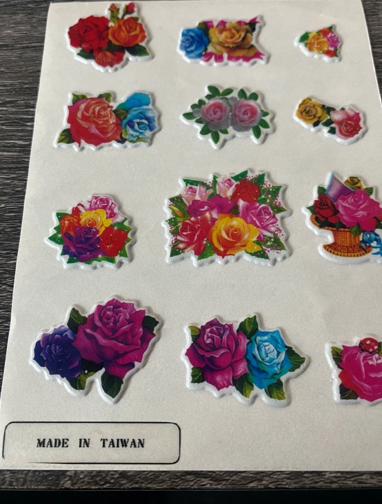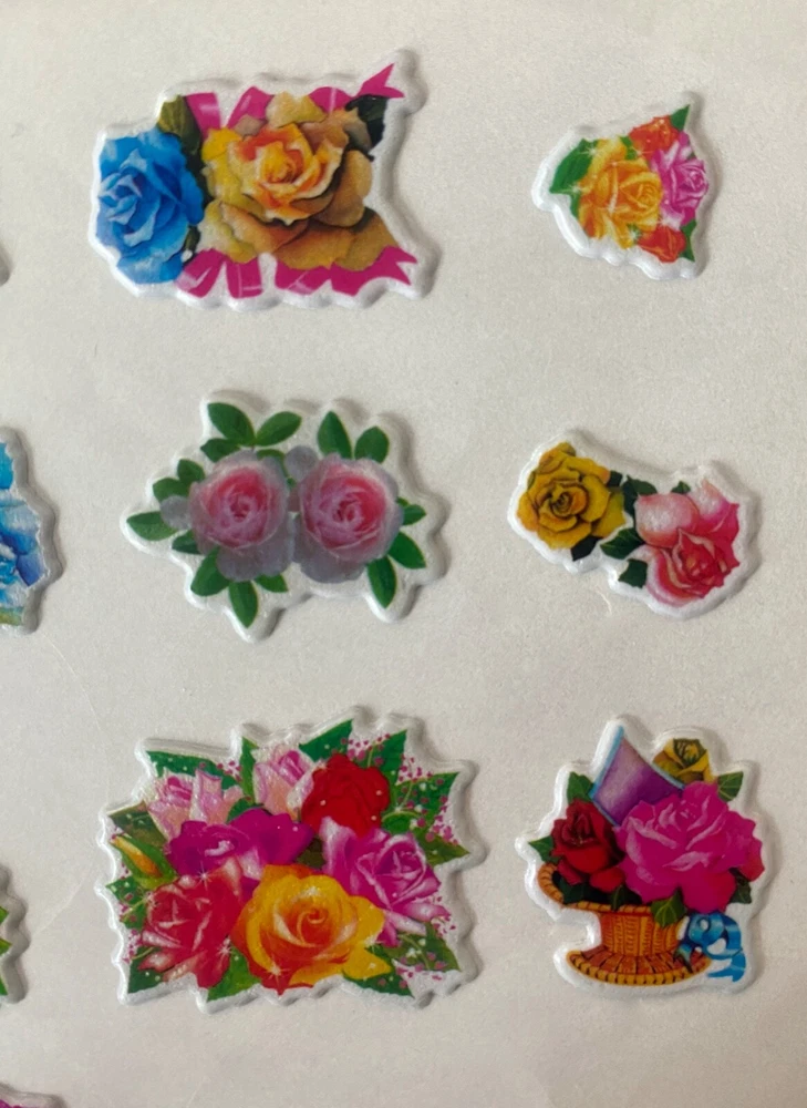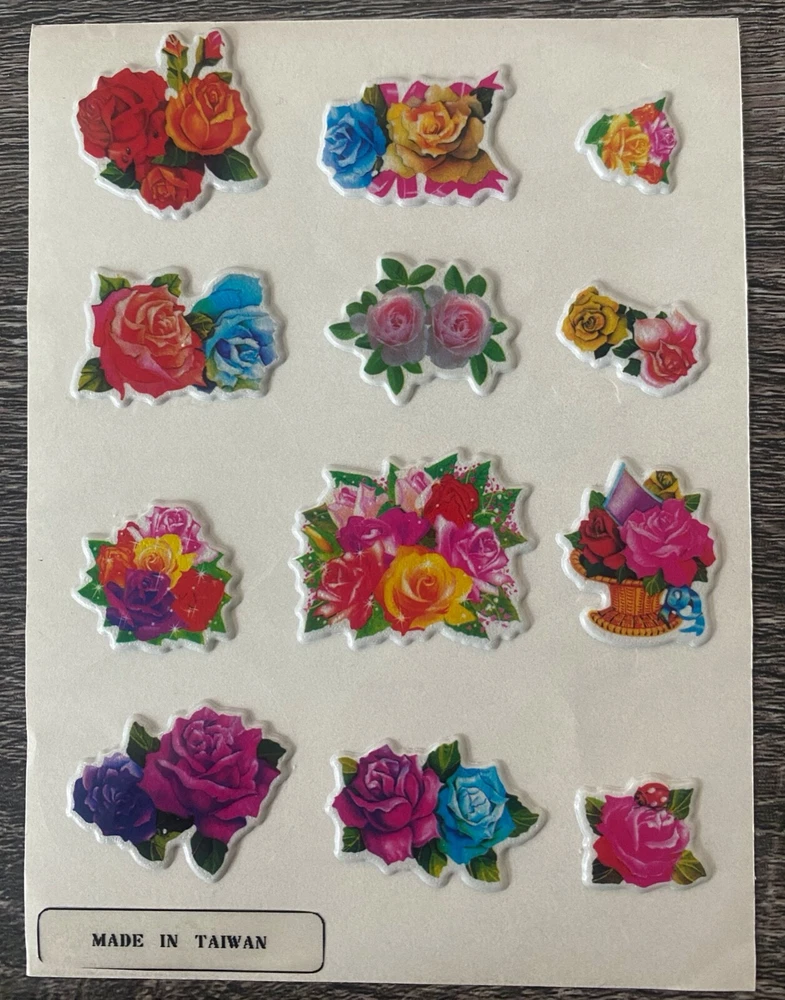 Vintage 1980s Puffy Scratch N Sniff Colorful Mixed Roses Vinyl Stick-Ons With Smell This New Full Sheet is in great condition. -Scent is not guaranteed due to age, but I am still able to smell every sticker. :) The stickers I am selling are from my Grandmother & Great Grandmother's personal sticker collection. Most are from over 30/40+ years ago. They have been in photo albums, boxes and plastic bags. These stickers are very Rare & in great condition. COLOR MAY VARY FROM DIFFERENT SCREENS PLEASE ASK ANY QUESTIONS YOU MAY HAVE ABOUT THE COLORING OF THIS ITEM BEFORE COMMITTING TO PURCHASING IT PLEASE. Check out my other collections! Thank you.
