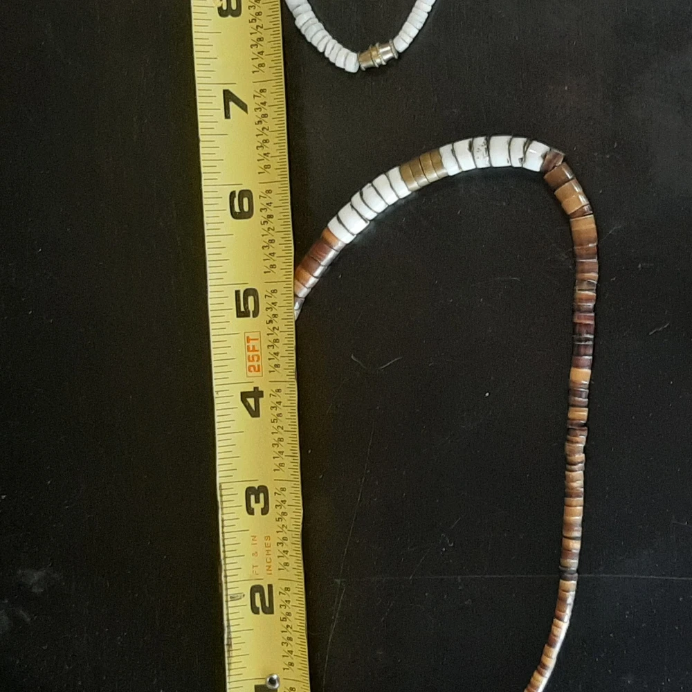 Add a touch of vintage charm to your jewelry collection with this set of two Puka shell necklaces. Perfect for those who love vintage and antique jewelry, these necklaces are a must-have. They are versatile enough to be worn with any outfit, and their style is sure to make a statement. Don't miss out on the opportunity to add these beautiful necklaces to your collection. Measurements are also in the pictures If you have any questions, please ask before bidding making offers and or purchasing Combine Shipping NON-SMOKING HOUSEHOLD Estate Finds Auction Finds Primarily Arizona Finds