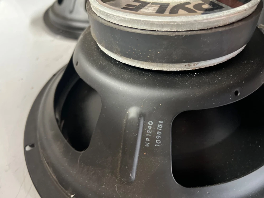 Two Oldschool PYLE Polly cone WP1240 woofers. Both work but need foam !