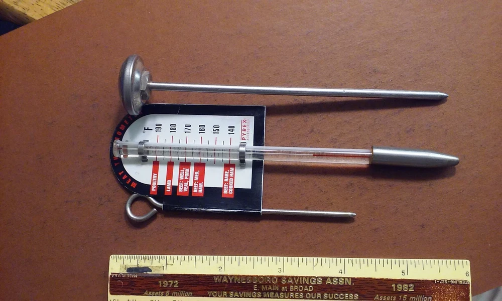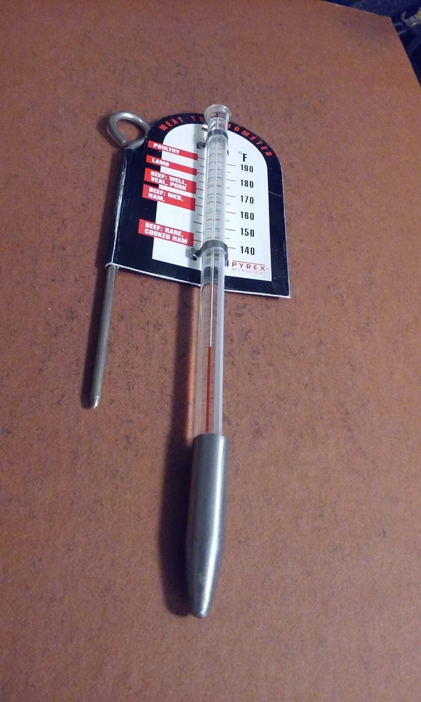 Vintage Pyrex Accessories Meat Thermometer & Johnstone extra thermometer 6" Inches Long.