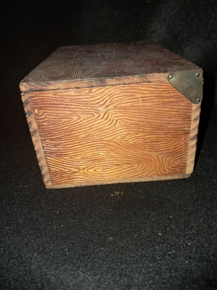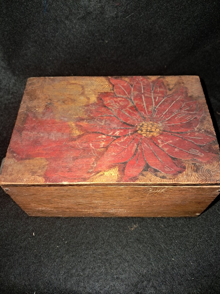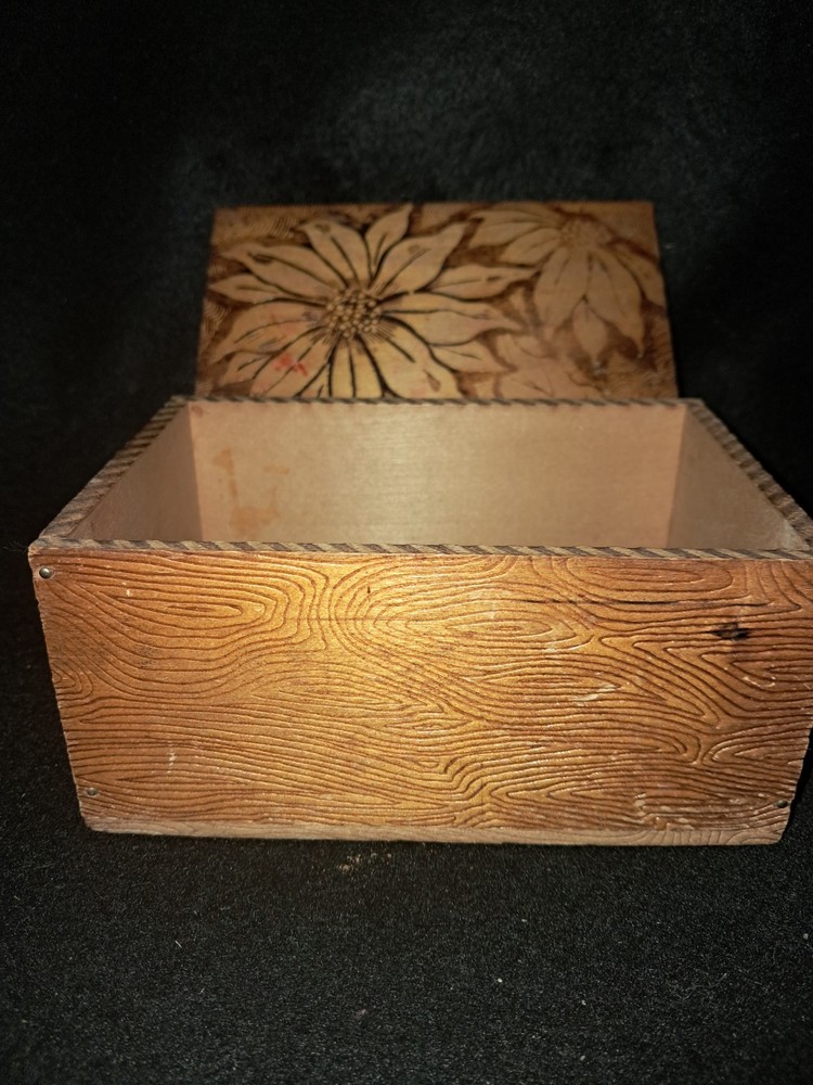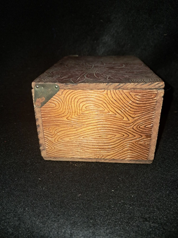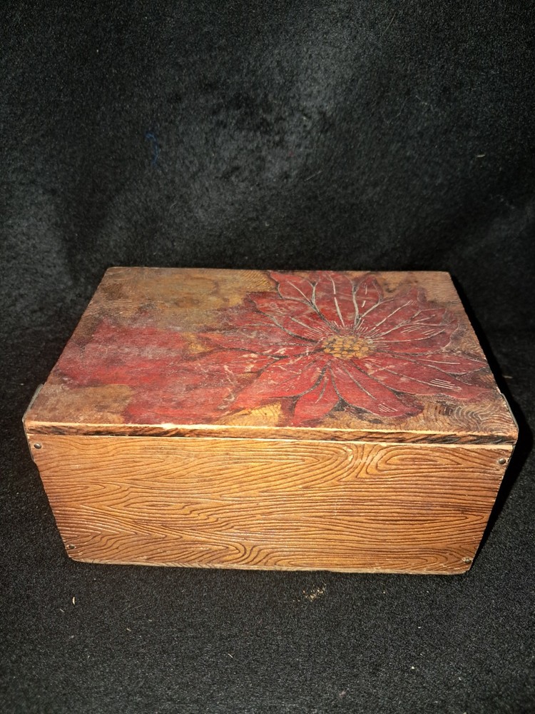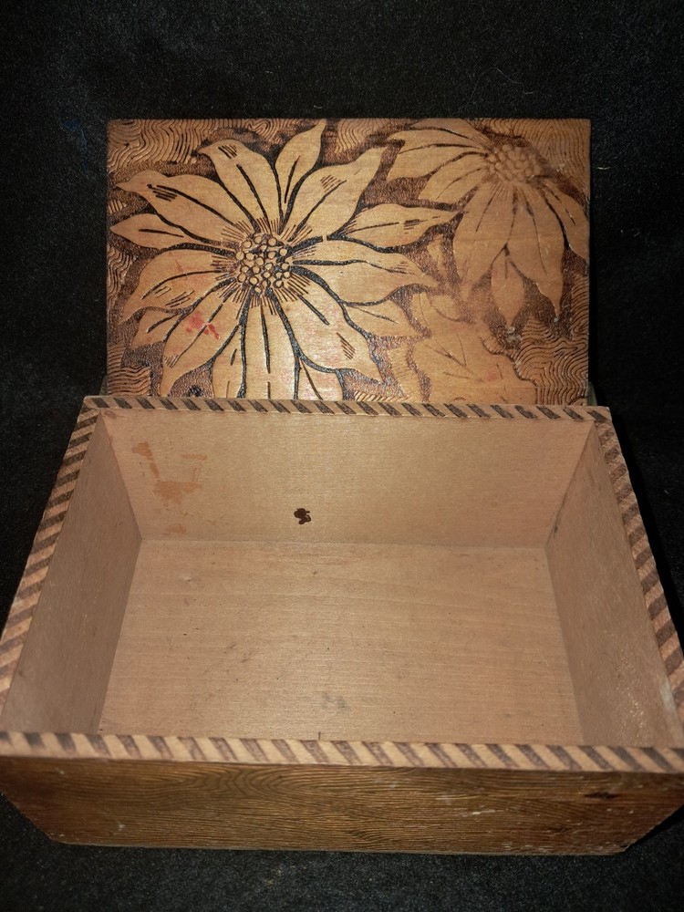 This vintage pyrography box is a beautiful addition to any collection. The rectangular shape and floral pattern make it a perfect keepsake box for any occasion. Measuring 5.75" x 4" x 3", it is medium in size and can fit in any room. The box is made of wood with a painted finish and features art nouveau style. It is perfect for teens, adults, and girls who love all occasions. The box is unboxed and has been engraved with a beautiful floral design. This original piece is a must-have for collectors and those who appreciate art.