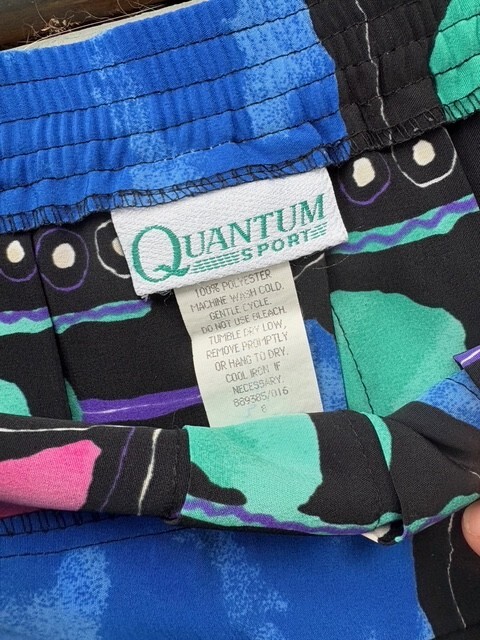 This is a listing for a pre-owned vintage Quantum Sport tennis skirt in a size 8 (modern small). It has a retro geometric print and back zipper and hook and eye closure. Please ask all questions prior to auction end for all sales are final. Thank you & good luck! BRAND: Quantum Sport SIZE: Vintage US size 8. 13" across waist lying flat, 15" in length Fabric: 100% polyester Unlined Made in the USA