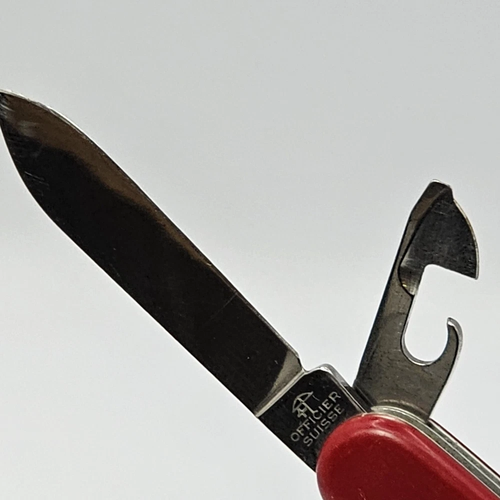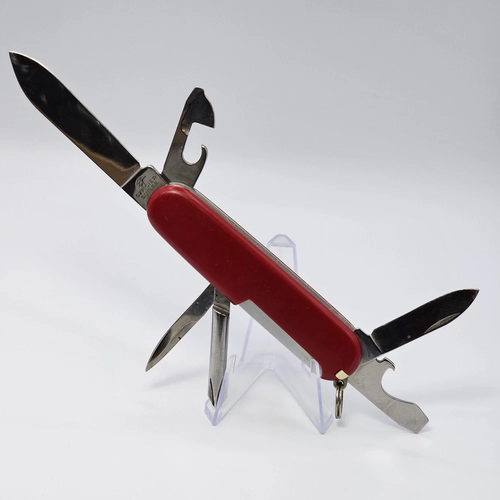 You are buying a: Vintage RED Victorinox Officier Suisse Stainless Swiss Army Knife Multi Tool Please see photos we take of each item received for its condition . We do our best to describe or mention any defects. We want you to be happy with your purchase, so ask questions before purchasing! FREE Shipping ! Orders carefully packaged Please message if you have questions!