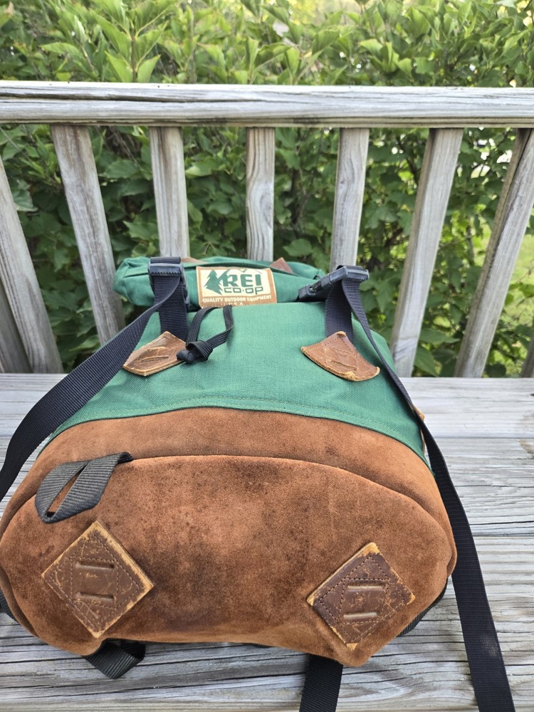 80's Vintage REI Co-op Backpack. - Green with leather accents. Preowned in good condition with some exterior wear. The interior has some visible wear die to age as shown in the photos (see photos). PLEASE NOTE π Please take your time to review the photos closely as they are part of the item's description. We always try to present colors as accurately as we can, but keep in mind that colors may show up differently on different devices. We do our best to take all photos in natural light during the day, so as to ensure that any noticeable flaws are visible in the best lighting. π We include written measurements in our descriptions where applicable and also show the measurements in the photos. π We pack everything as carefully as we can and all orders come from a clean, pet-free, smoke-free space. π All of our items are sold as is. We do not accept returns. If you have any questions or need to see another photo or two, feel free to reach out; we are more than happy to help! Warmly, Tamy (Narrow Path Expo)
