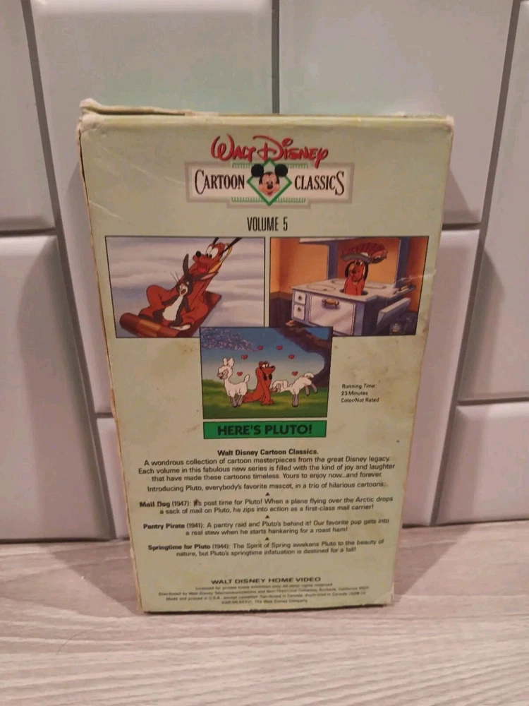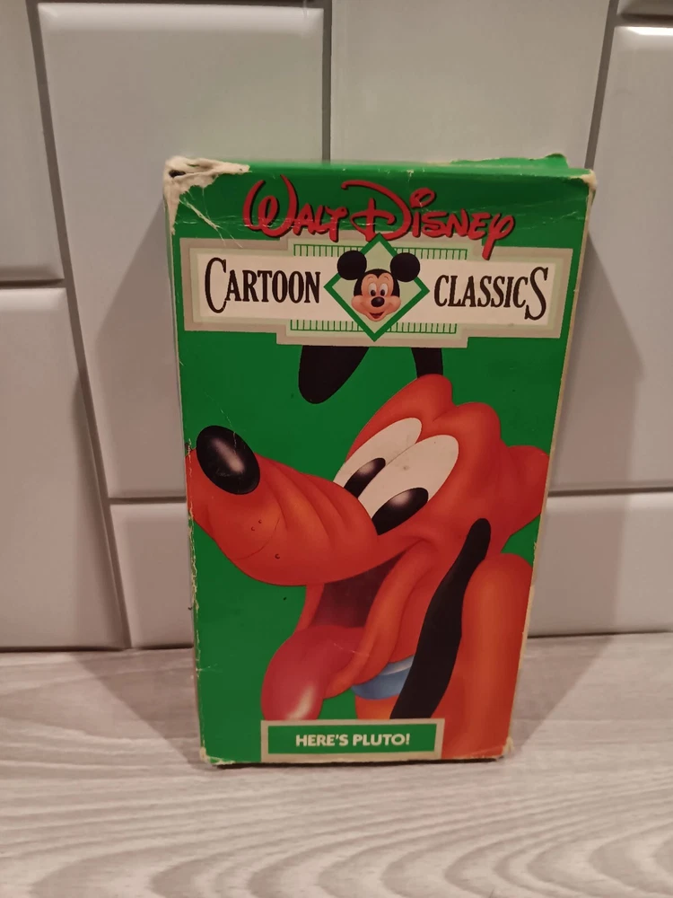 This rare vintage Walt Disney VHS tape features the beloved character Pluto in a classic cartoon adventure. The tape is a must-have for any Disney collector or fan of classical animation. The VHS has been well-maintained and is in excellent shape, making it a great addition to your collection. The tape is in English and has not been rented in the past. The genre is music and concerts, with a sub-genre of classical. The movie/TV title is Cartoon Classics: Here's Pluto!, produced by Disney. This VHS tape is a great find for anyone looking to add some classic Disney magic to their collection.