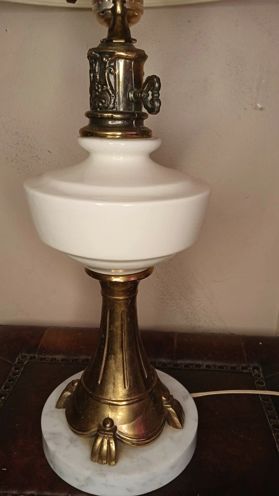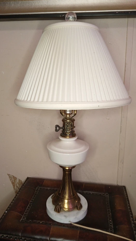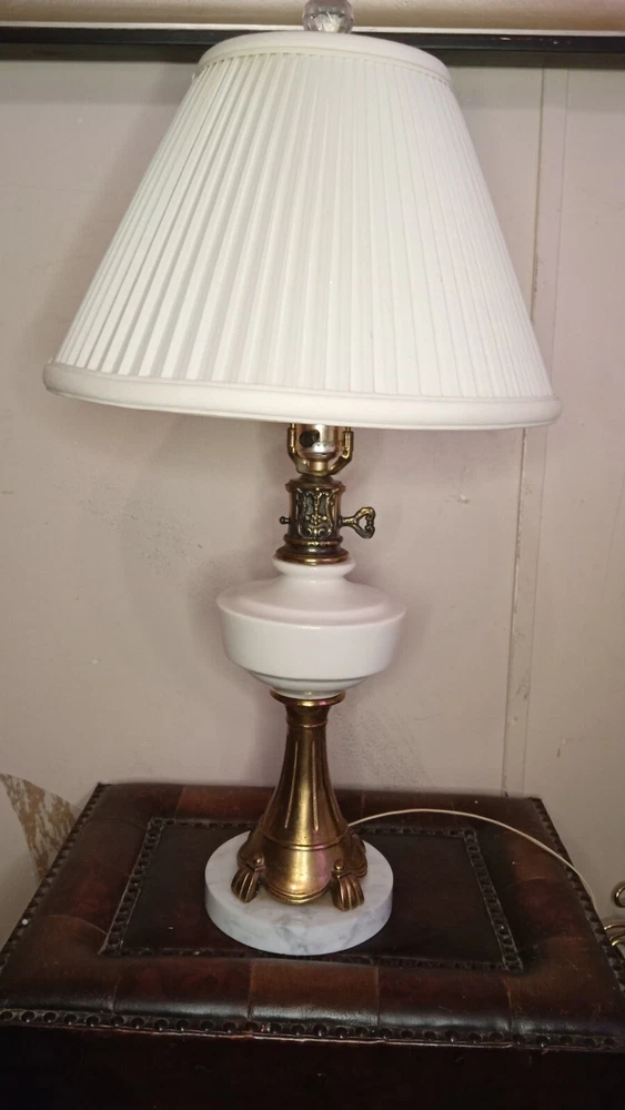 Own this Stunningly Beautiful Vintage Real Brass , Real Marble Ivory White Glass Lamp. The craftsmanship in the brass is exceptional & Beautiful Marble Base. Would look good in any room of your home.