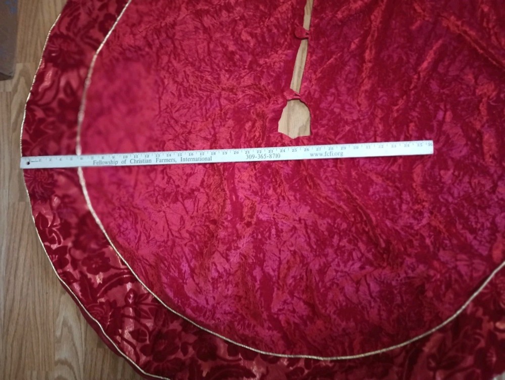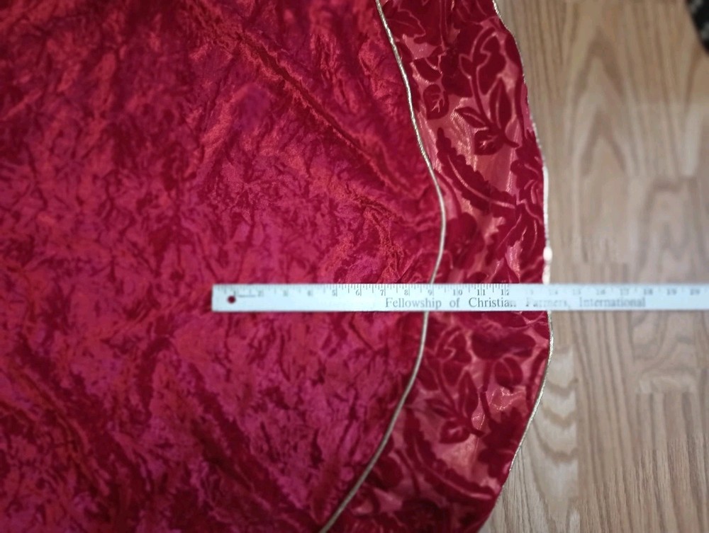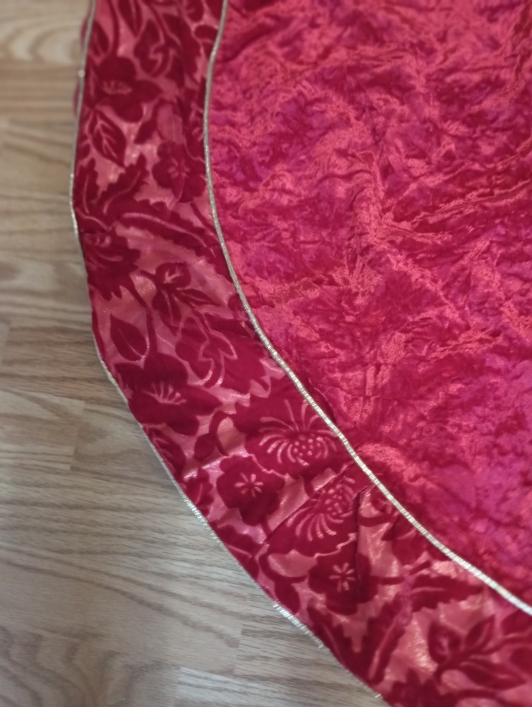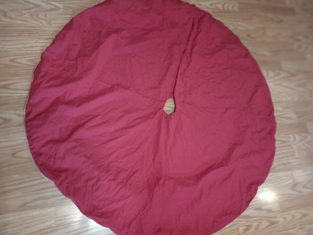 Red and white embroidered 43-inch handmade Christmas tree skirt