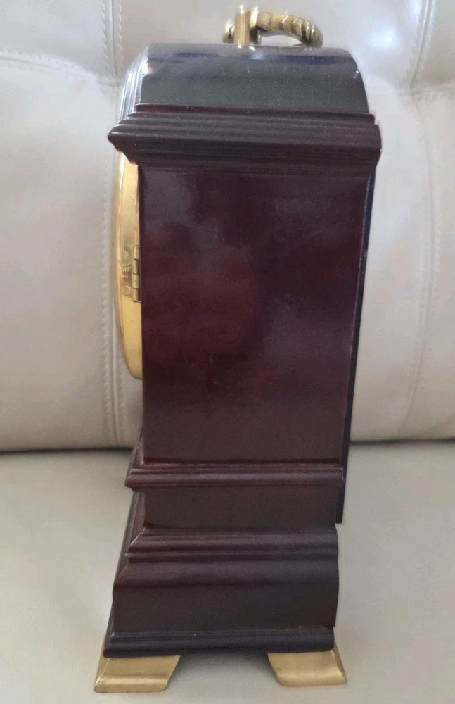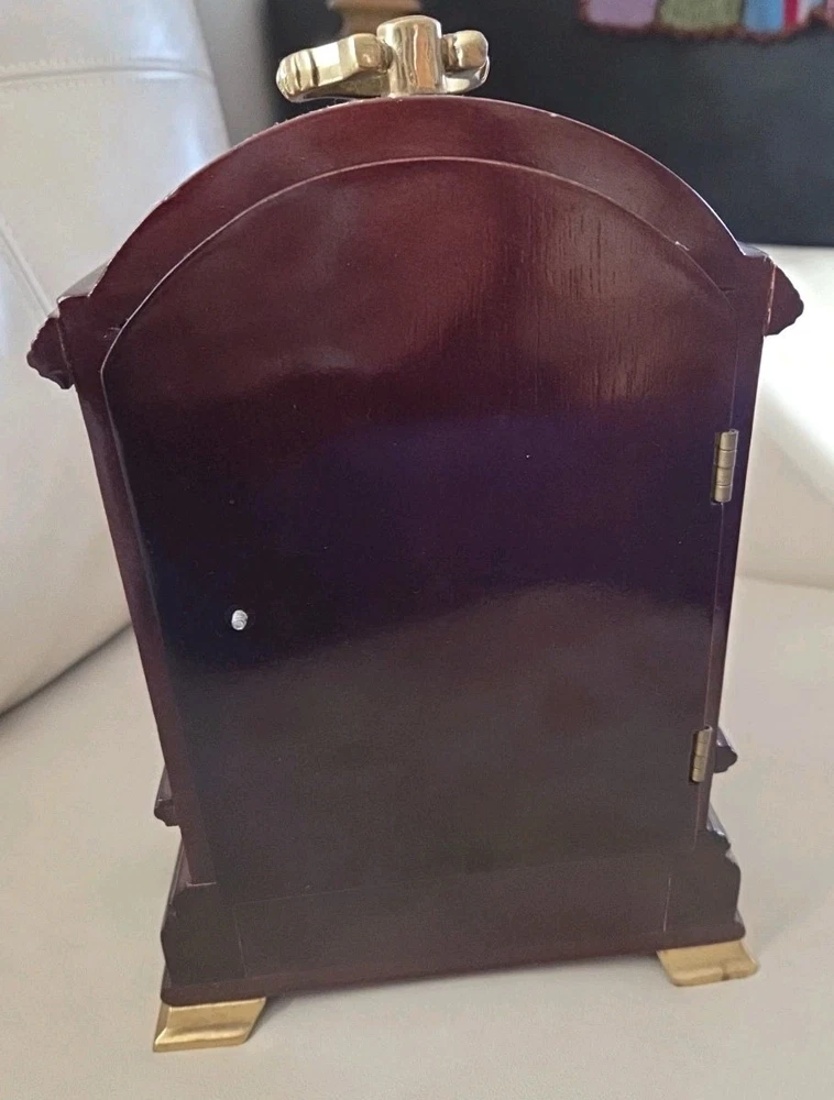 This vintage wooden mantel shelf clock is a beautiful addition to any room. The clock features a classic analog display and is powered by a battery. Its chime sequence is the Westminster sequence and it has a vintage/retro style. The clock is made of wood with a mahogany finish and has a quartz movement. The clock's antique value is enhanced by its battery-operated feature, making it a convenient and valuable addition to any collection. Its frame material is wood and it has a model number of unknown. The clock is classified under the Collectibles, Decorative Collectibles, Clocks, and Desk, Mantel & Shelf Clocks categories. Its year of manufacture is 1990, and it is a vintage item.
