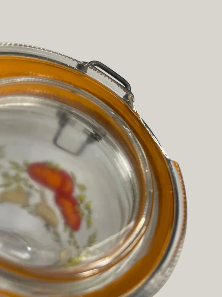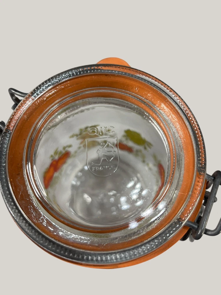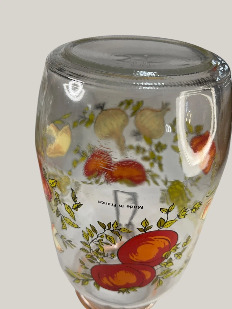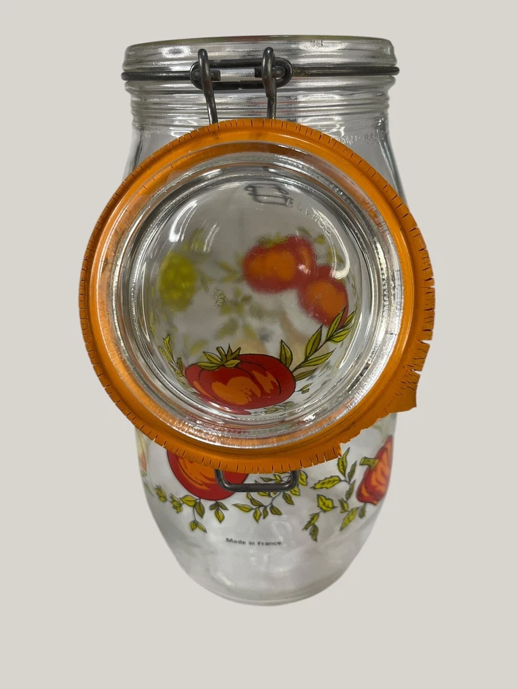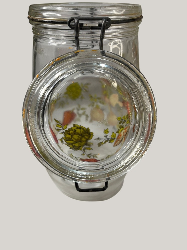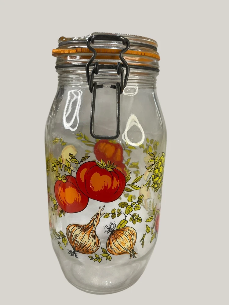 Absolutely love this retro Arcoroc canister set! The vibrant veggie print brings such cheerful vintage charm to my kitchen. The sturdy glass and clasp lids keep spices and dry goods fresh, though one seal needs replacing—a small fix for such a unique find. Perfect for adding a pop of 70s flair while staying functional.