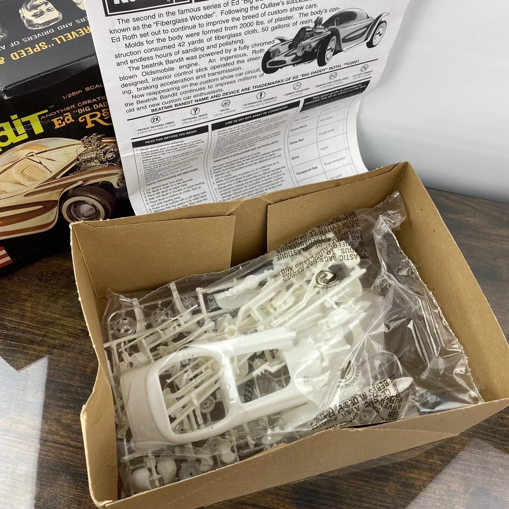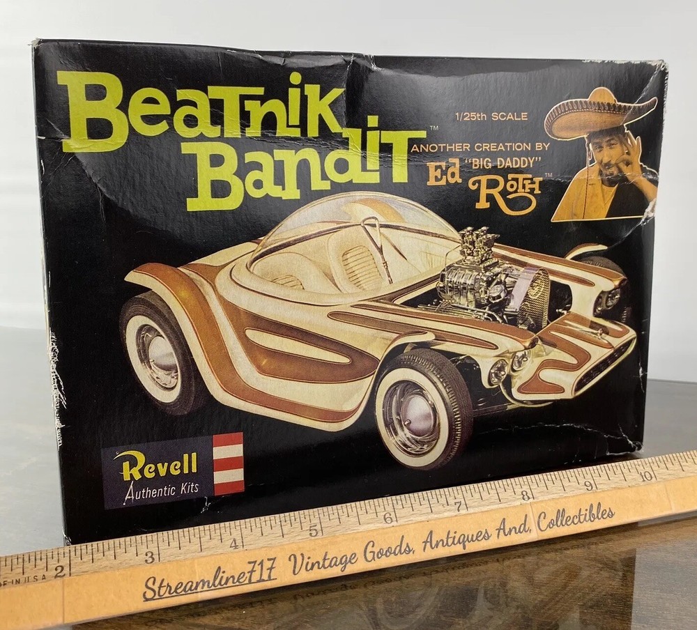 This Revell model kit is a must-have for any fan of Ed "Big Daddy" Roth and his iconic Beatnik Bandit custom show car. With its vintage design and unique features, this model is perfect for collectors or hobbyists who appreciate the art of model building. From the show car's sleek curves to its intricate details, this kit captures the essence of Roth's work. Add this piece to your collection today and bring a classic piece of automotive history to life. Most of our items are second hand and have some shelf wear on them. We do not guarantee mint condition unless otherwise noted. Please take time to look closely at all photos of items and specifics, as they are all part of the complete description. Most noticeable flaws we see will be pointed out with a pen. All items in the photos are of the actual product being shipped directly to you (minus display props and measuring devices) If an item is not in the photos, please do not expect it. If you have any questions or concerns, please reach out to us. Our feedback speaks for itself. We do all we can to keep you satisfied with your buying experience from Streamline717 If you enjoyed this item, please check out our ever growing inventory for more of “The Good Stuff”