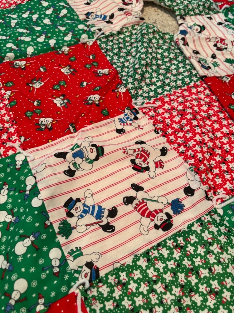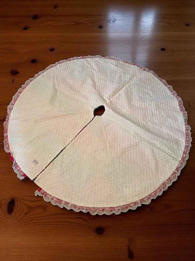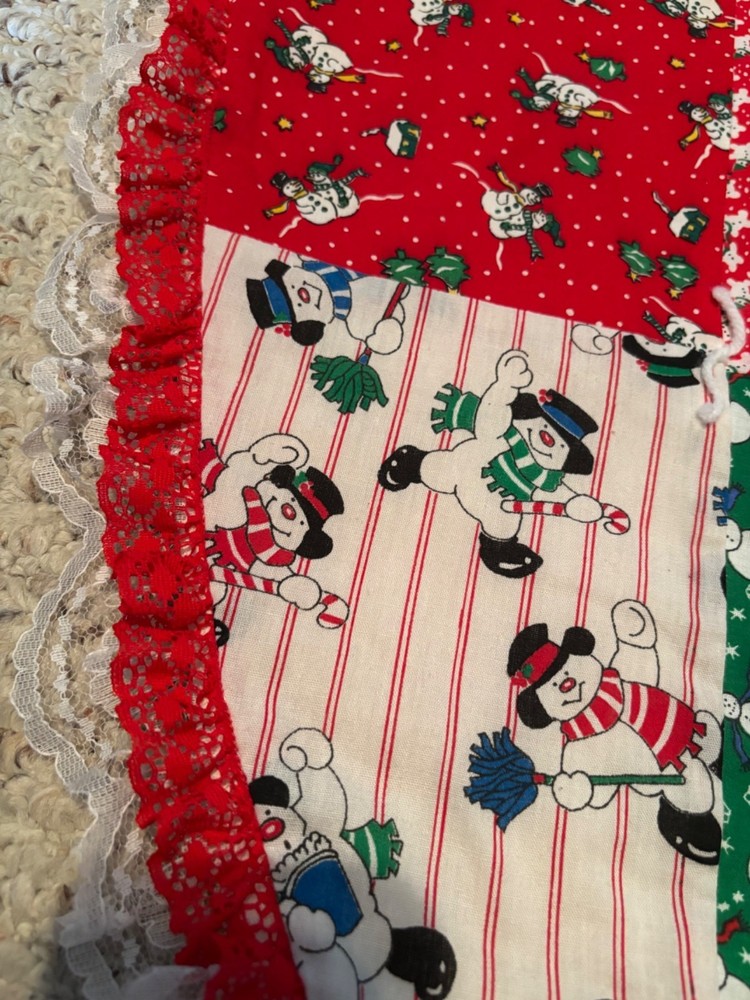 Vintage Reversable Quilted / Snowman Handmade Christmas Tree Skirt 59" This is in excellent Condition no stains or holes. This measures 59" Diameter not including the lace trim. Also there is a label attached that reads "Hand Crafted by Smiley Fran Fashions" Shop with confidence! With over 25 years of experience in online sales and a proven track record, you can count on me for top-notch service. I carefully pack and ship your items, offering same-day shipping for orders placed before 12 pm EST. Your support means the world to me. Thank you! - Rose