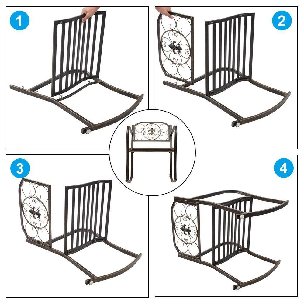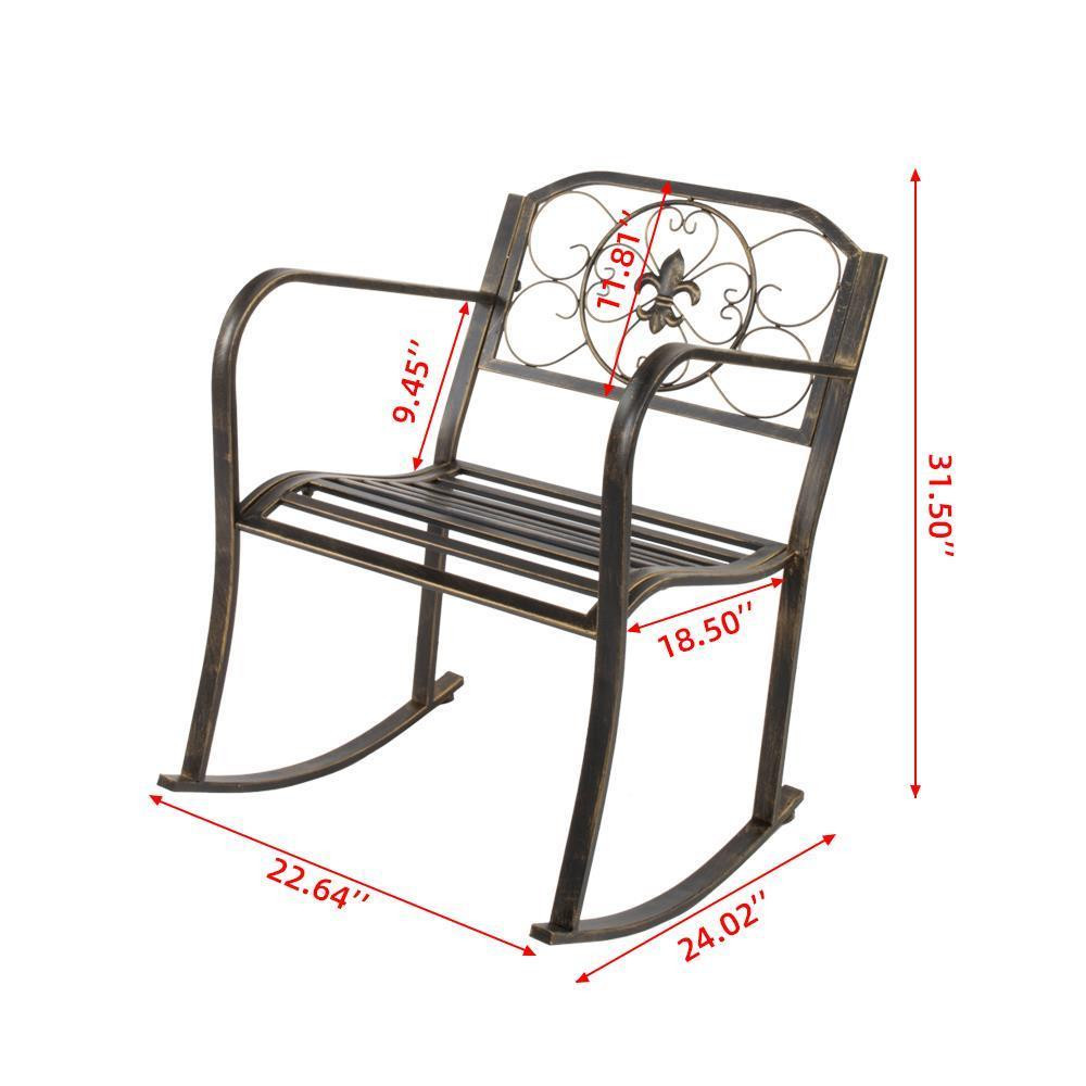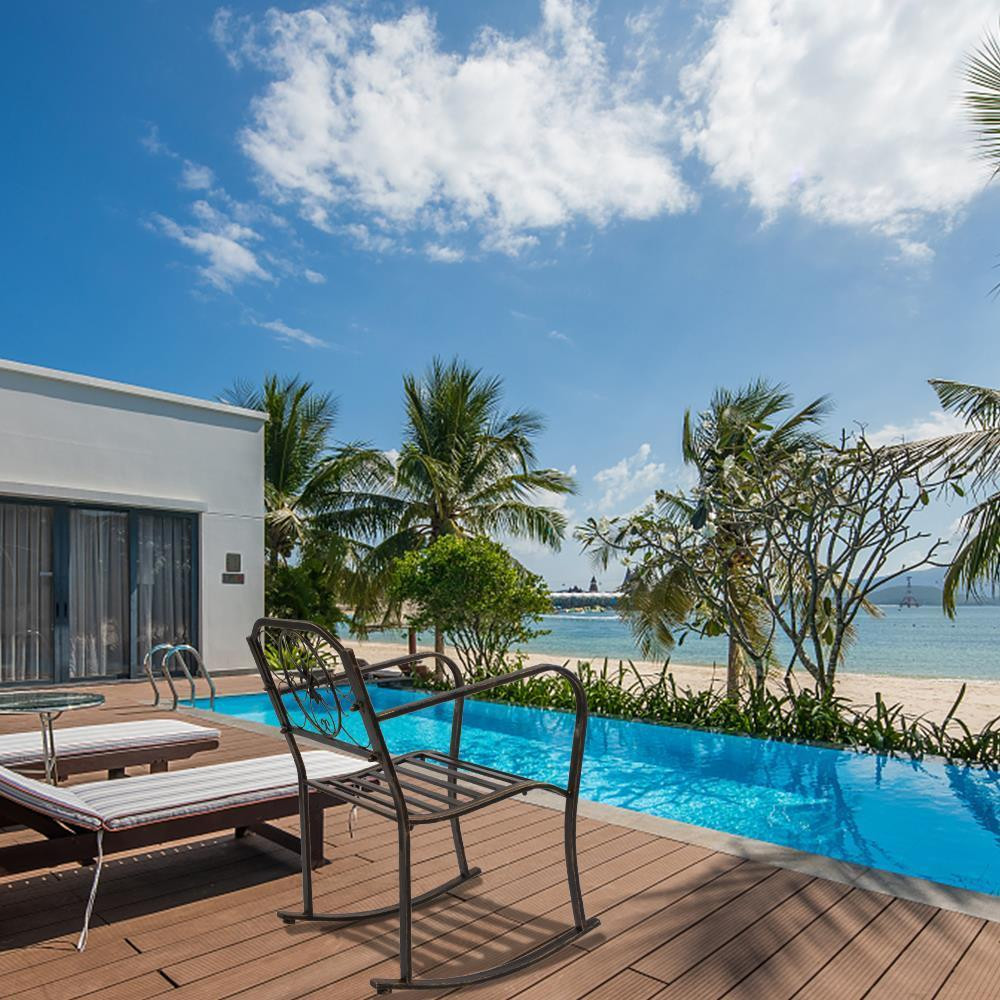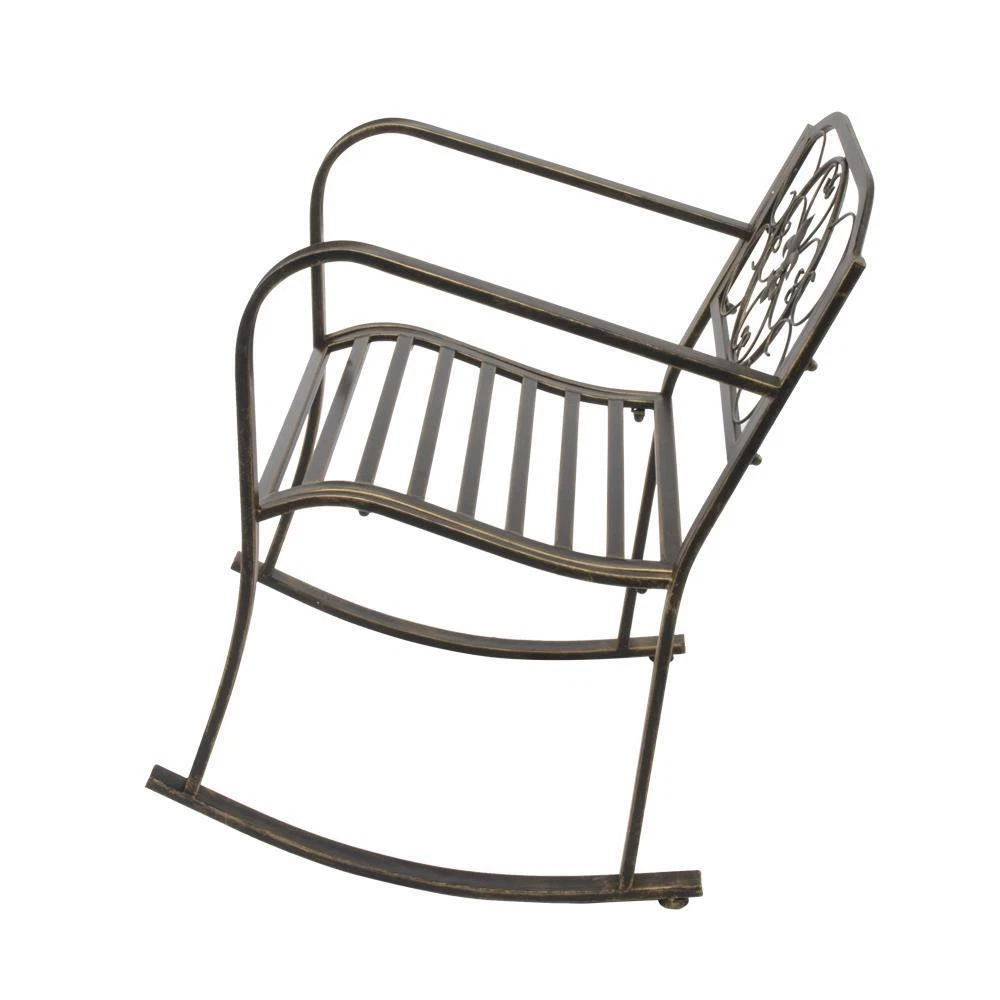 This rocking chair is a fantastic addition to any outdoor space! The sturdy wrought iron frame feels durable yet lightweight, making it easy to move around. The smooth rocking motion is so relaxing—perfect for sipping coffee or unwinding after a long day. The classic design blends seamlessly with patio or porch decor, and the comfort level is just right. Highly recommend for anyone looking to add a cozy touch to their outdoor living area!