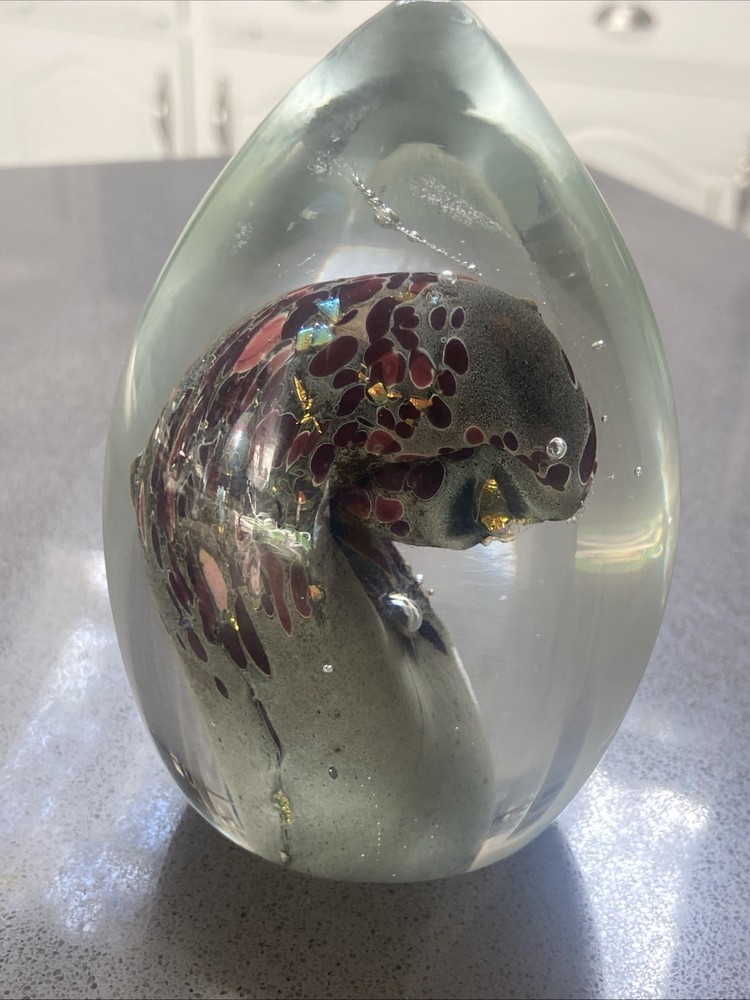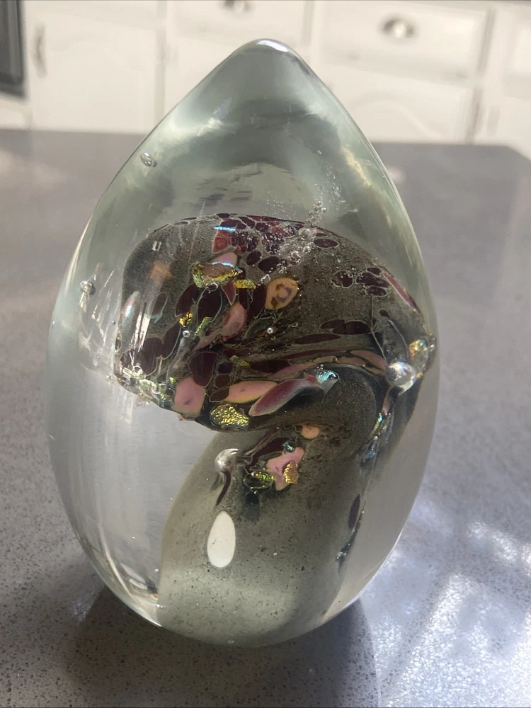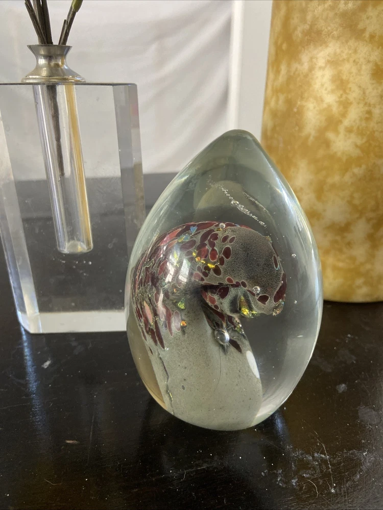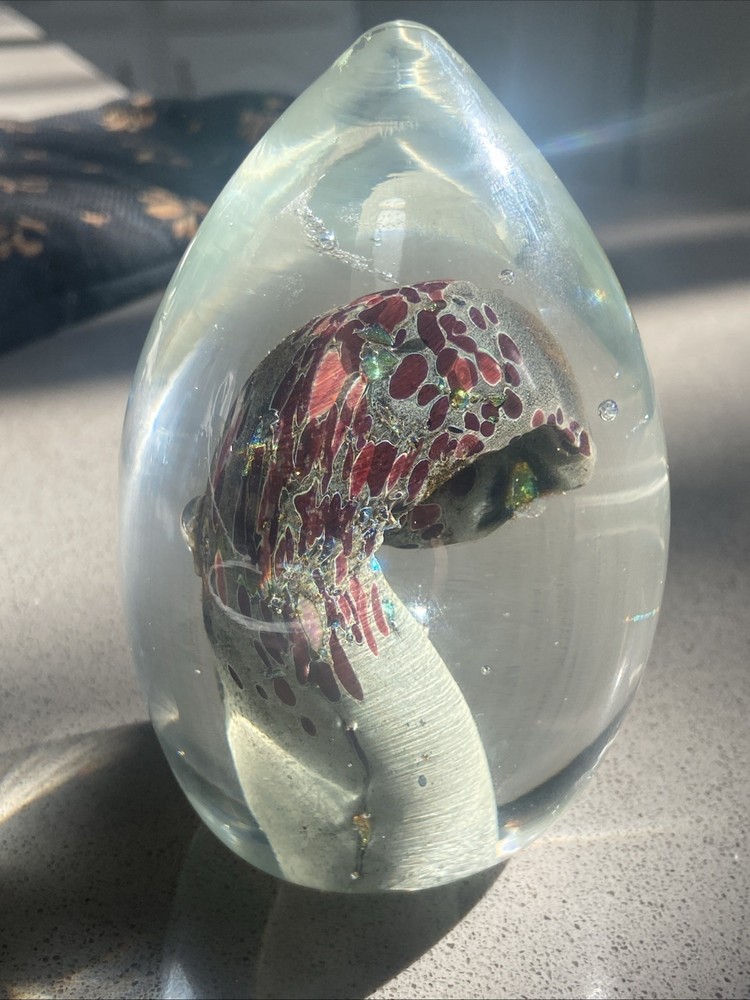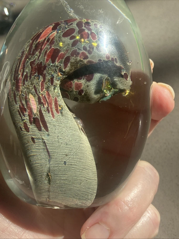 Country of Origin:United StatesMaterial:GlassEra:Late 20th Century (1970-1999)Year Manufactured:1998Antique:NoFeatures:one of a kindBrand:KargProduction Technique:Hand Blown GlassPattern:SwirlHandmade:YesStyle:Mid-Century ModernColor:MulticoloredOriginal/Licensed Reproduction:OriginalTime Period Manufactured:1990-1999Production Style:Art GlassFinish:GlossyTheme:shellType:PaperweightVintage:Yes