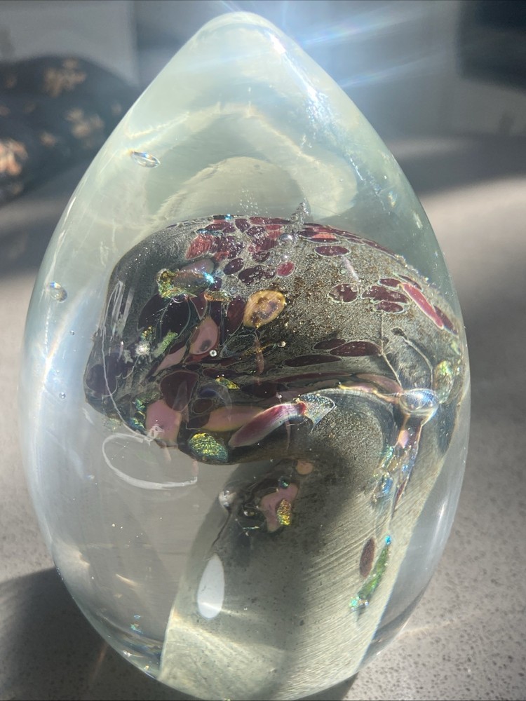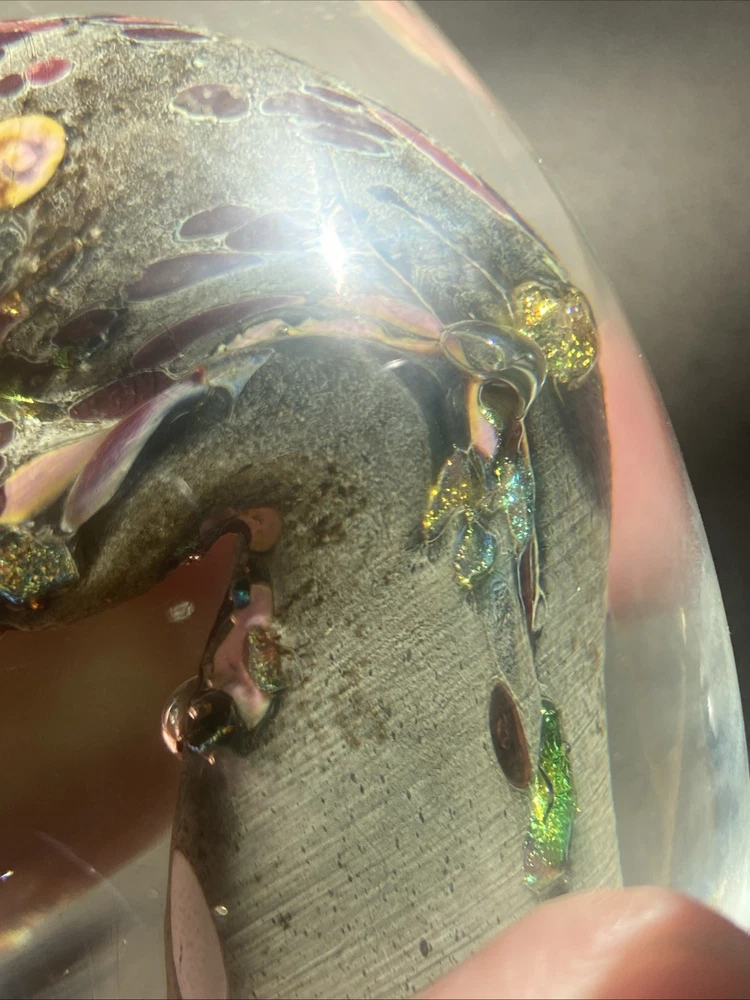 Vintage Rollin Karg Dichroic Art Glass Sculpture Paperweight Signed