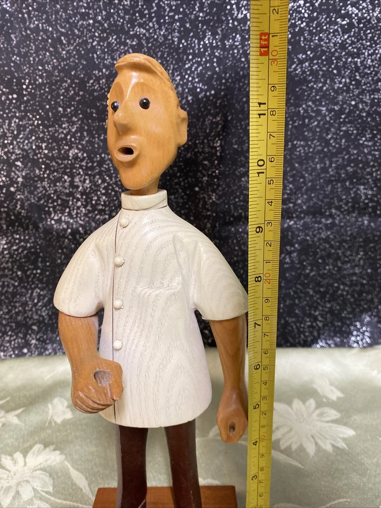 Hand carved working man figure from Italy. He was originally holding tools but they have gone missing. You can add any little tools to replace and make unique. hg-005
