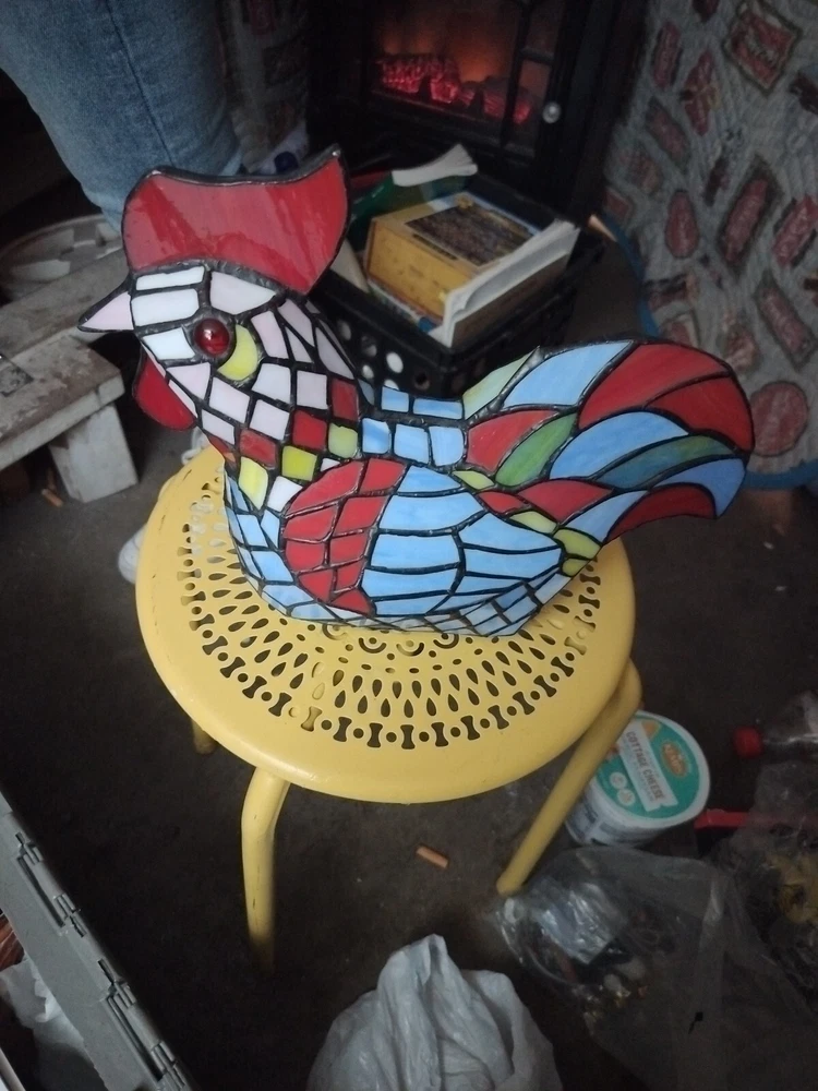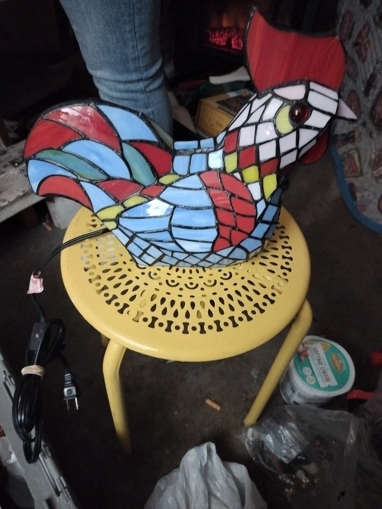 Style: Country Theme: Chicken Brand: Unmarked Design: Mosaic, Stained Glass Type: Rooster Lamp Cord Color: Black Color: Blue Pattern: Mosaic Power Source: Corded Electric Original/Reproduction: Original Sensor Type: Light Material: Glass Vintage: Yes Features: Bulb/Tube Included