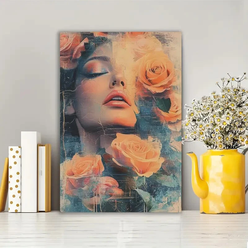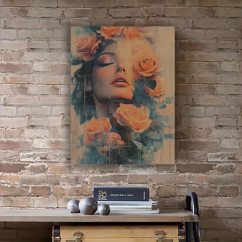 Vintage Rose Woman Wall Art Canvas Unframed/Framed